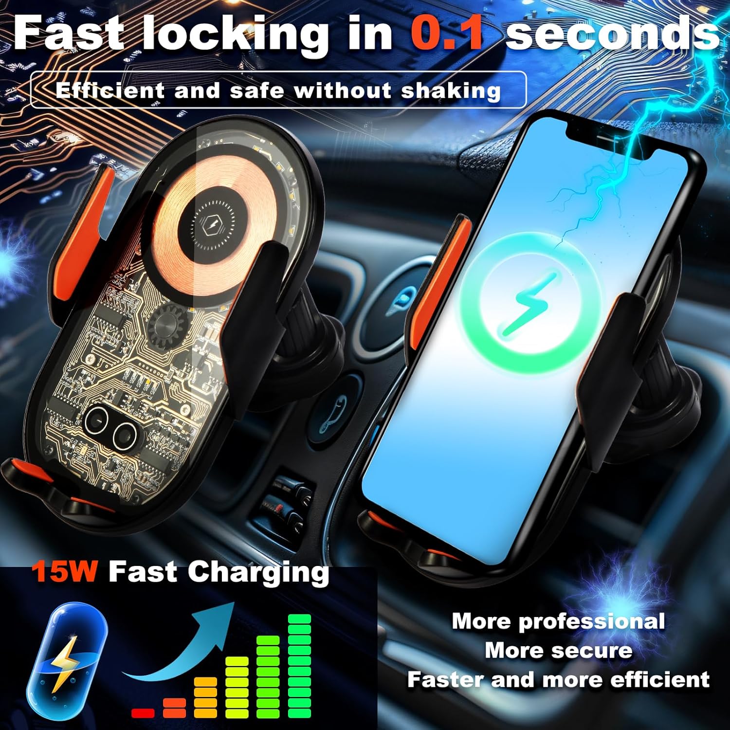 Car Phone Holder, Wireless Car Charger Air Vent Auto-Clamp Cell Phone Car Mount with Metal Hook Clip, 360° Rotation - One Button Release for iPhone, Samsung, Google, and All Other Smartphones