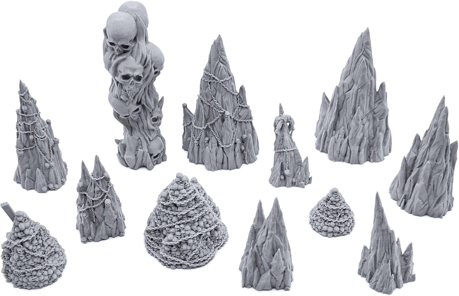 - Great value! Set includes 12 unique pieces including demonic realm rock formations and skull mounds of varying sizes.