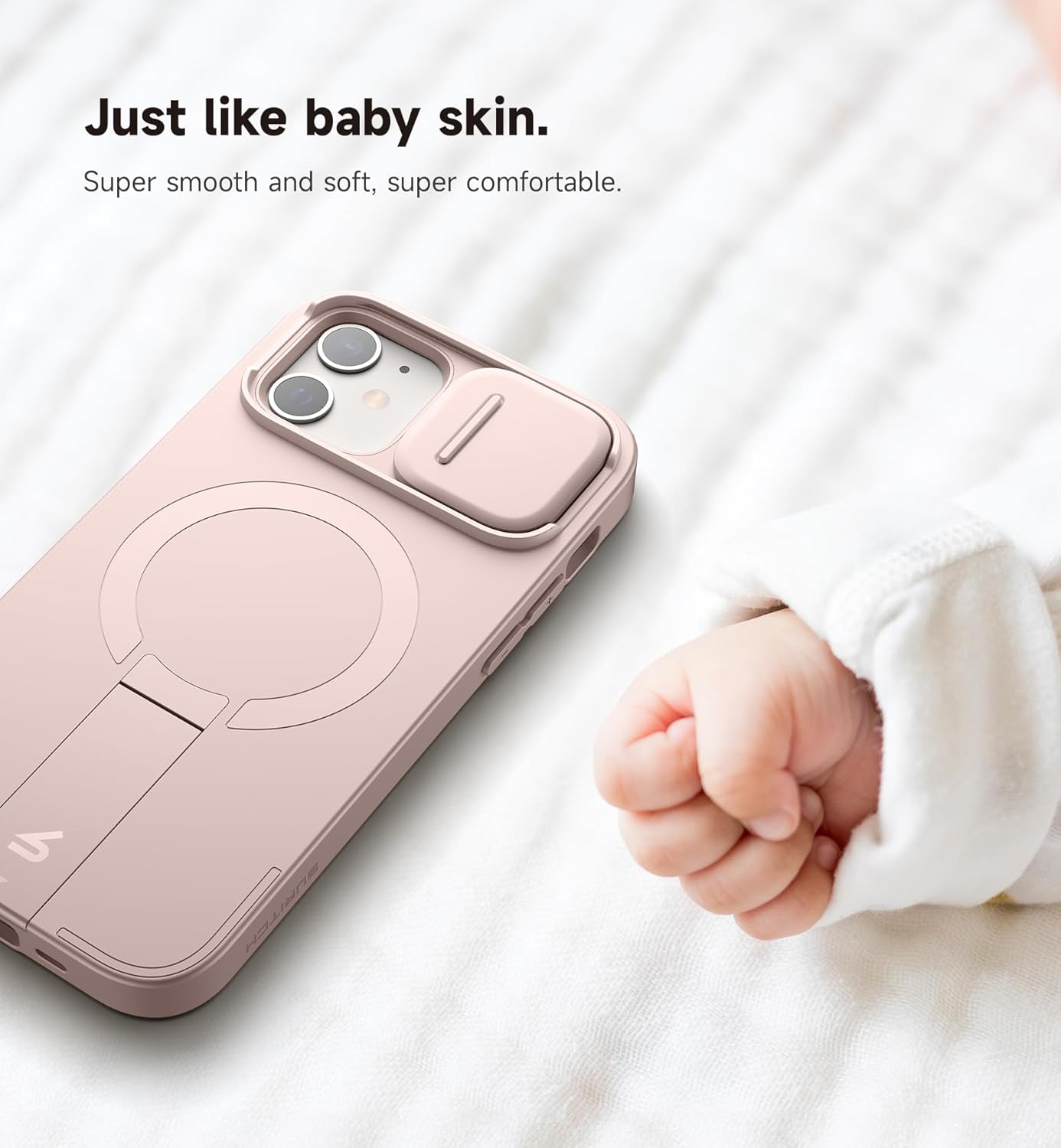 SURITCH for iPhone 12/12 Pro Case with Magnetic Camera Slide Cover and Adjustable Kickstand, Compatible with MagSafe, Shockproof Bumper Case Slim Protective Cover for iPhone 12/12 Pro 6.1 Inch, Pink