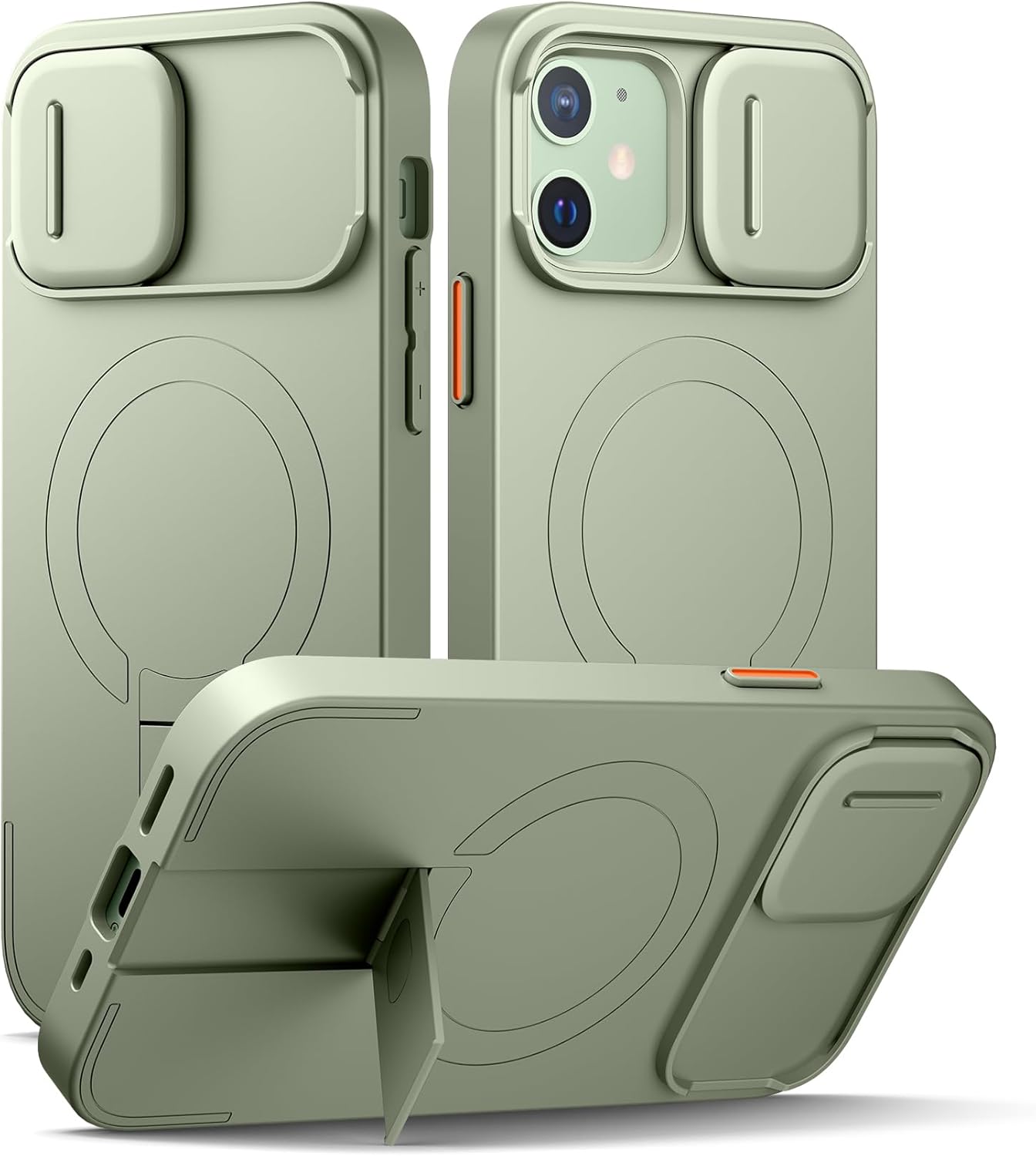 SURITCH for iPhone 12/12 Pro Case with Magnetic Camera Slide Cover and Adjustable Kickstand, Compatible with MagSafe, Shockproof Bumper Case Slim Protective Cover for iPhone 12/12 Pro 6.1 Inch, Green