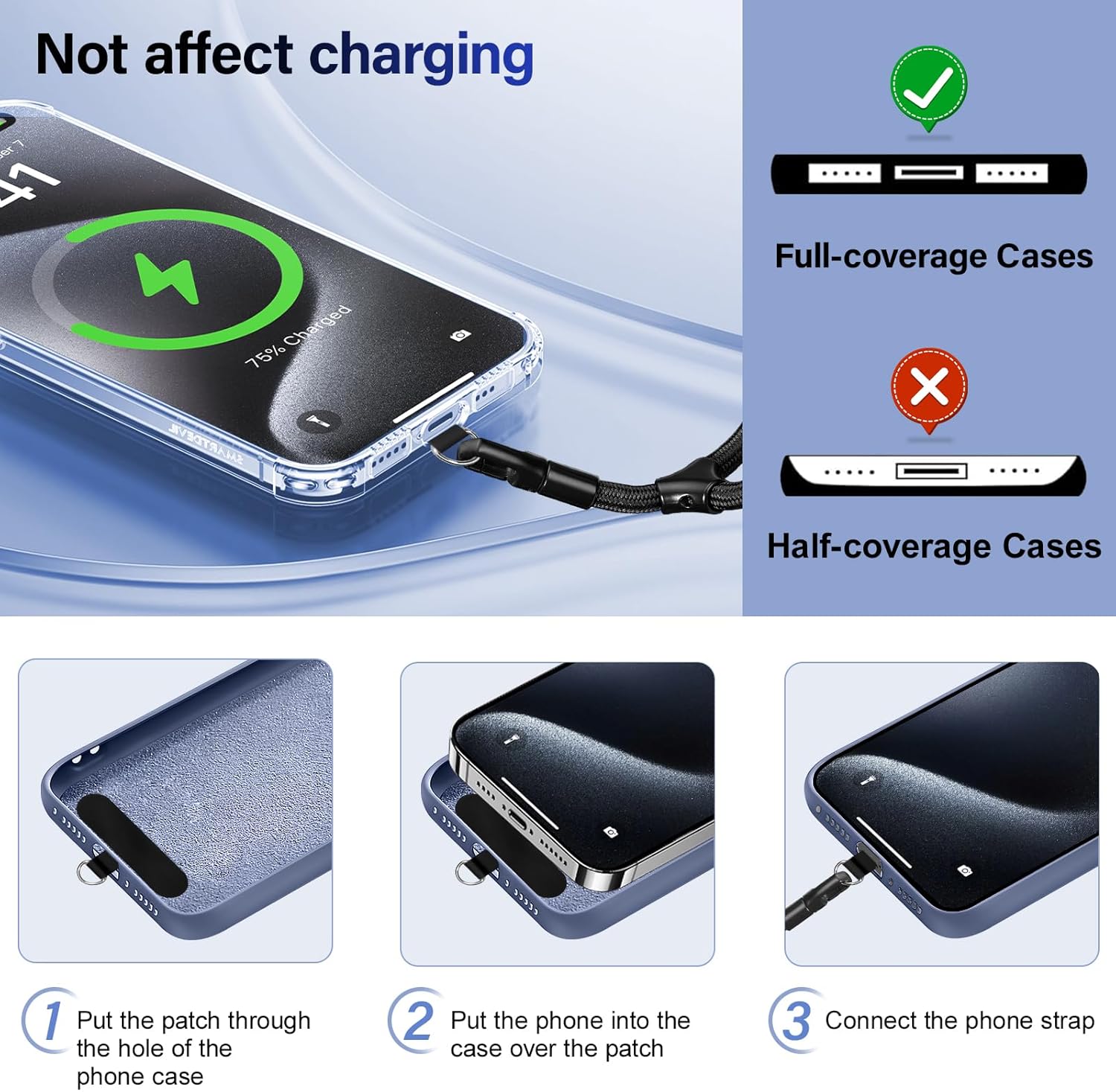 - Wide Compatibility: Versatile and widely applicable, our cell phone strap fits for any phones with a full-coverage case. It can also connect to your key, wallet, USB drive, ID name tag badge, and more. (Not suitable for half-coverage cases)