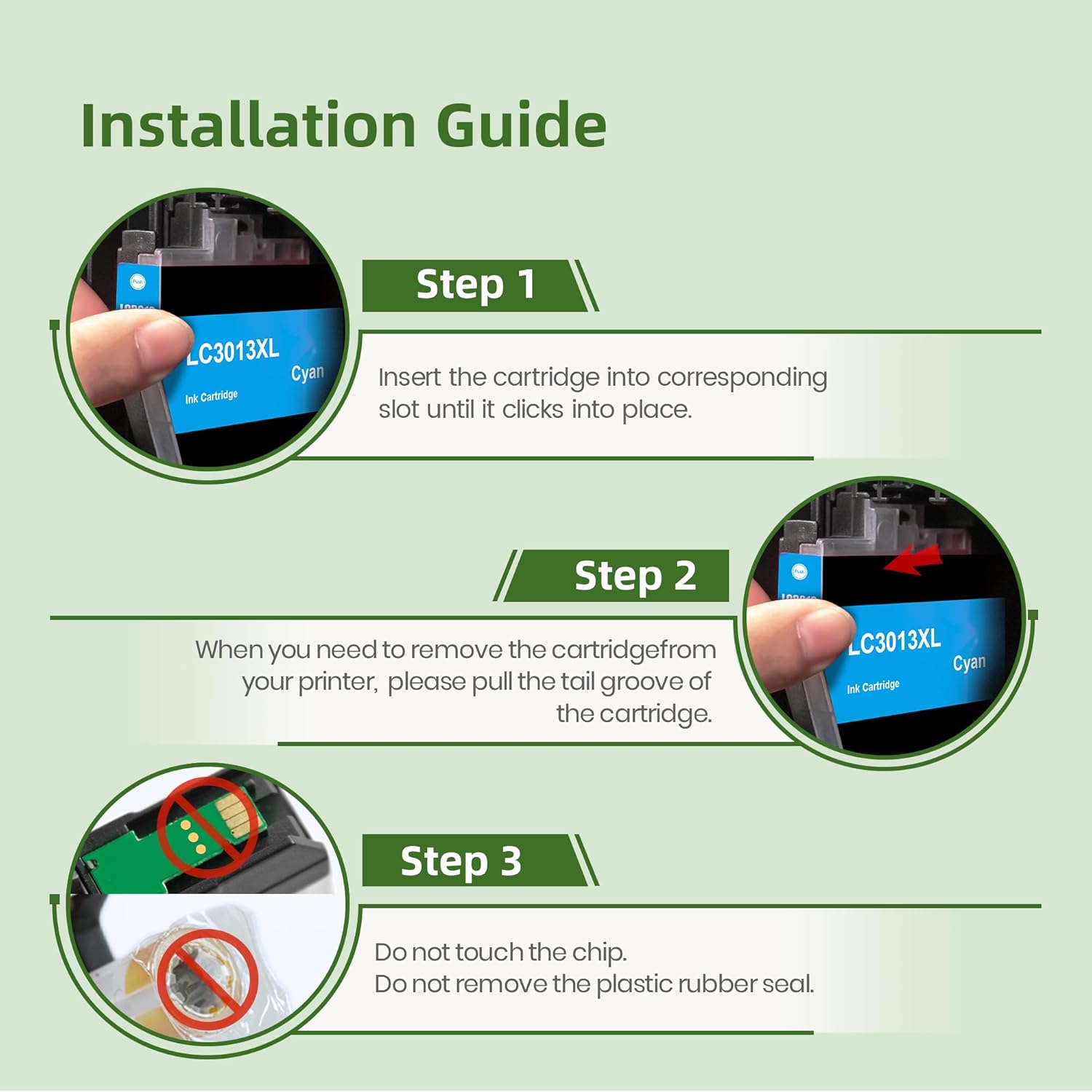 - Easier to use: These LC3011 LC3013 cartridges replacement for brother LC3011 LC3013 ink cartridges, LC3013 easy to install, print clear black text and bright output, excellent performance, multi-layer packaging, no leaks