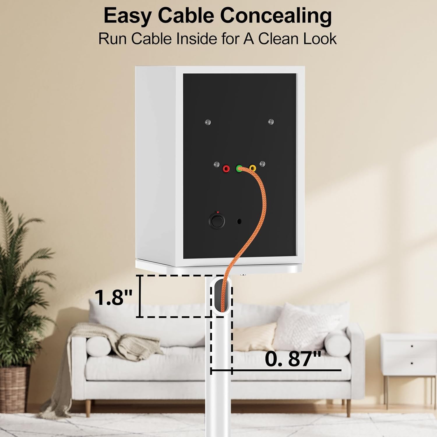 - Cable Concealing - The speaker monitor stand is built with large cable hole(0.9" W x 1.8" H) to run and hide cables inside the tube, which creates a neat and elegant look in your house