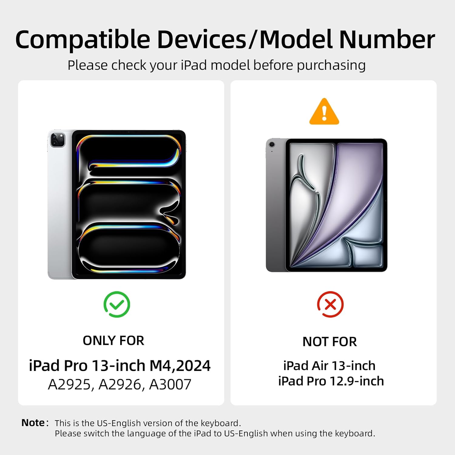 - ăCompatible DevicesăDesigned for iPad Pro 13 inch M4 2024 (A2925, A2926, A3007), transforming your iPad into a laptop anytime, anywhere