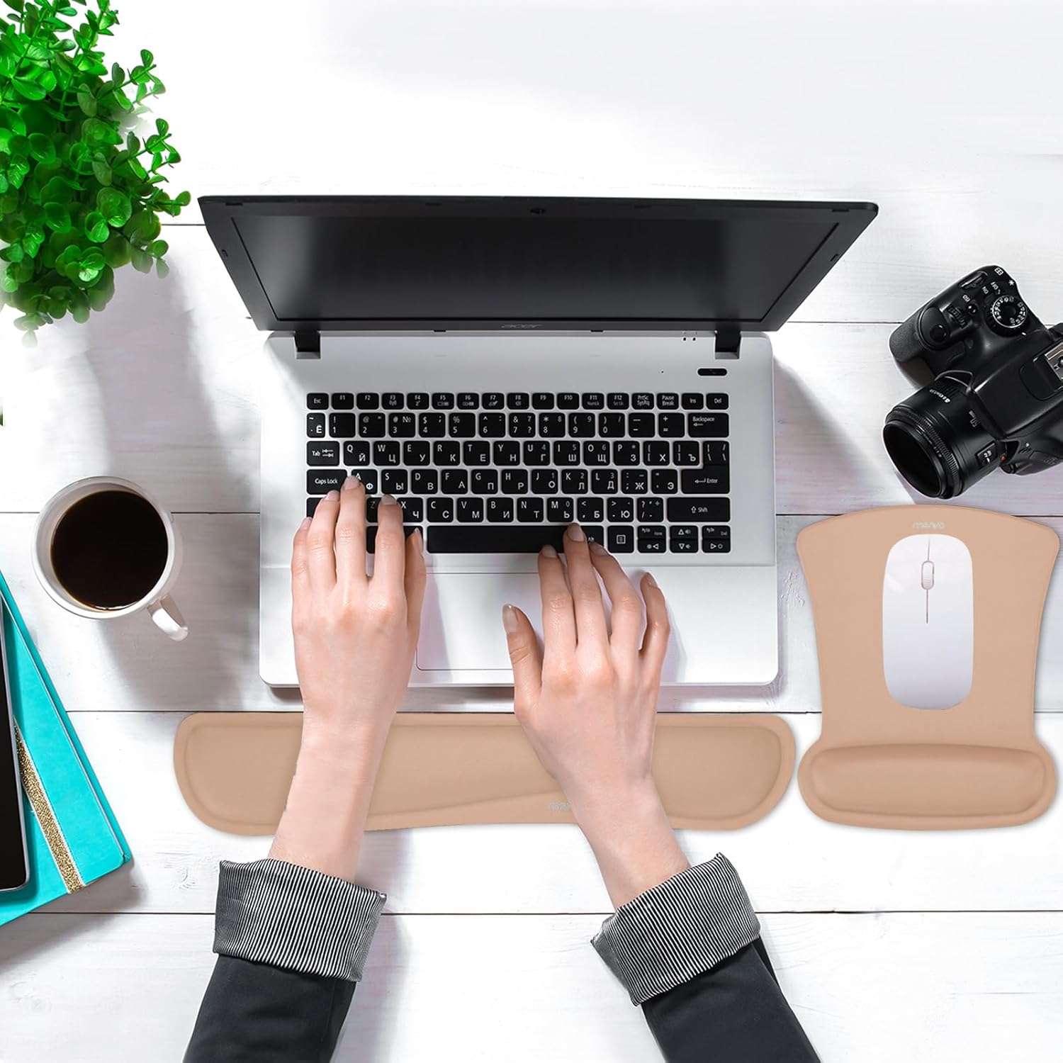 MOSISO Wrist Rest Support for Mouse Pad & Keyboard Set, Ergonomic Mousepad Non-Slip Base Home/Office Pain Relief & Easy Typing Cushion with Neoprene Cloth & Raised Memory Foam, Mocha