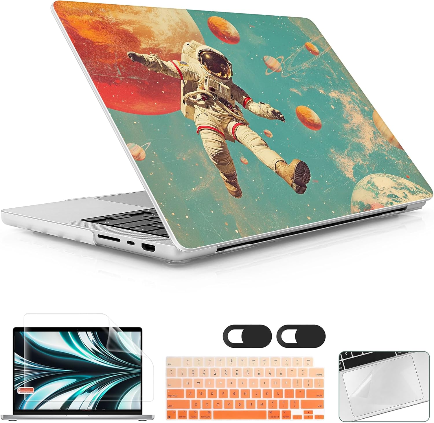 for MacBook Pro 16 inch Case 2021 2022 2023 2024 Release A3186 A3403 M4 A2991 M3 A2780 M2 A2485 M1 Pro/Max, Hard Shell Case with Screen Protector & Keyboard Cover, Astronaut Floating