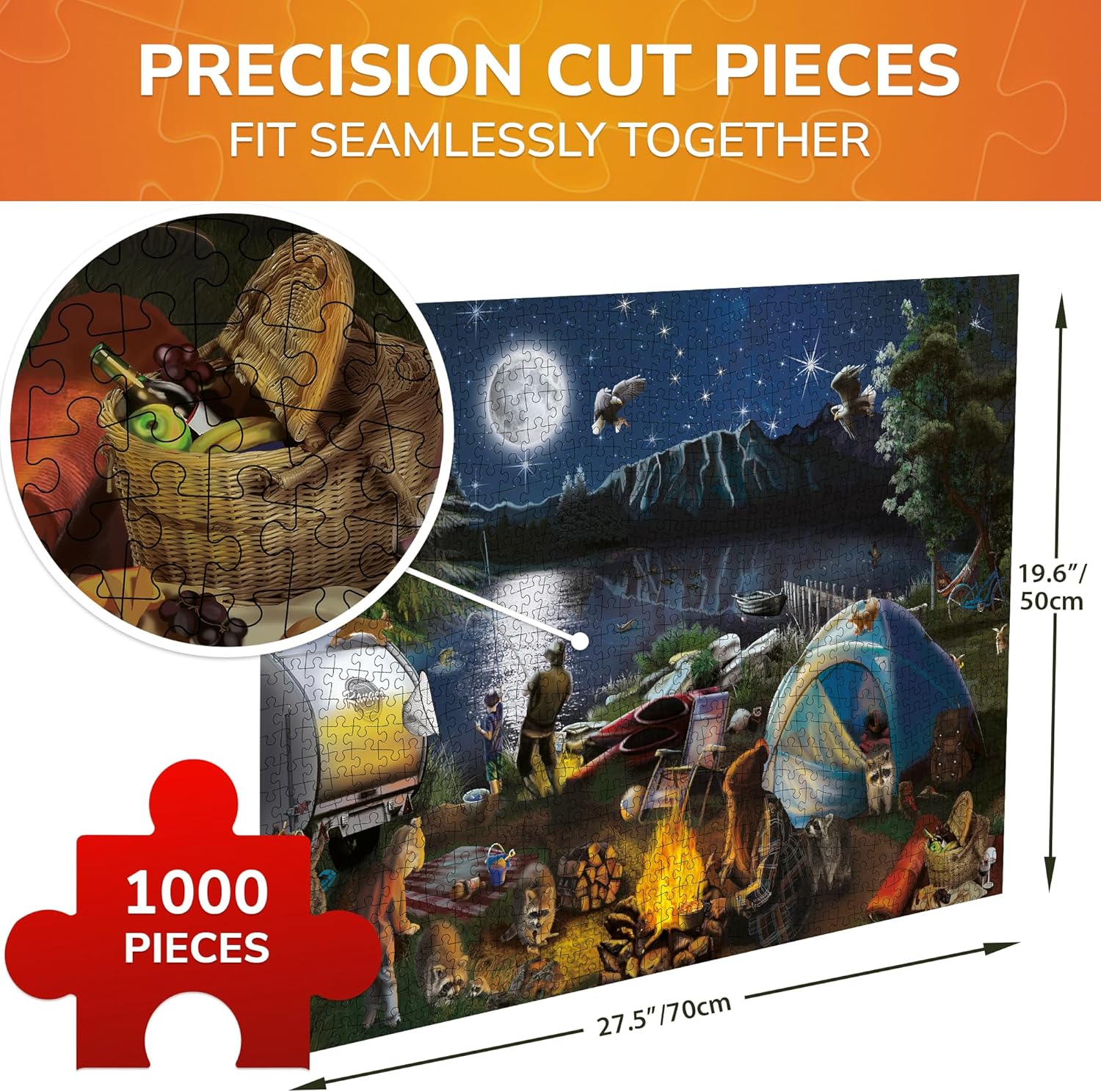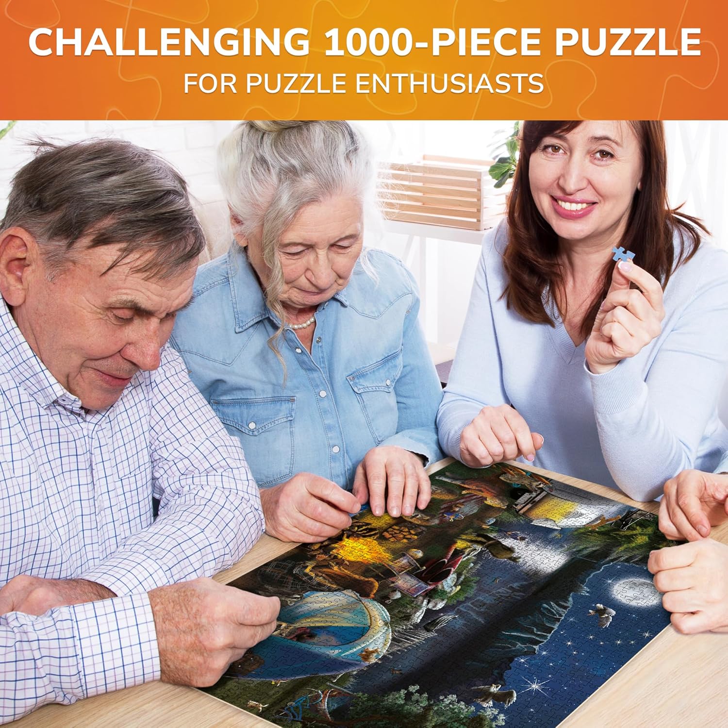 - GREAT ADULT GIFTS: a great gift for men and women to enjoy beauty of everyday life; Puzzle 1000 pieces show scenes from cozy night camping, bustling country market and stunning lighthouse at sunset