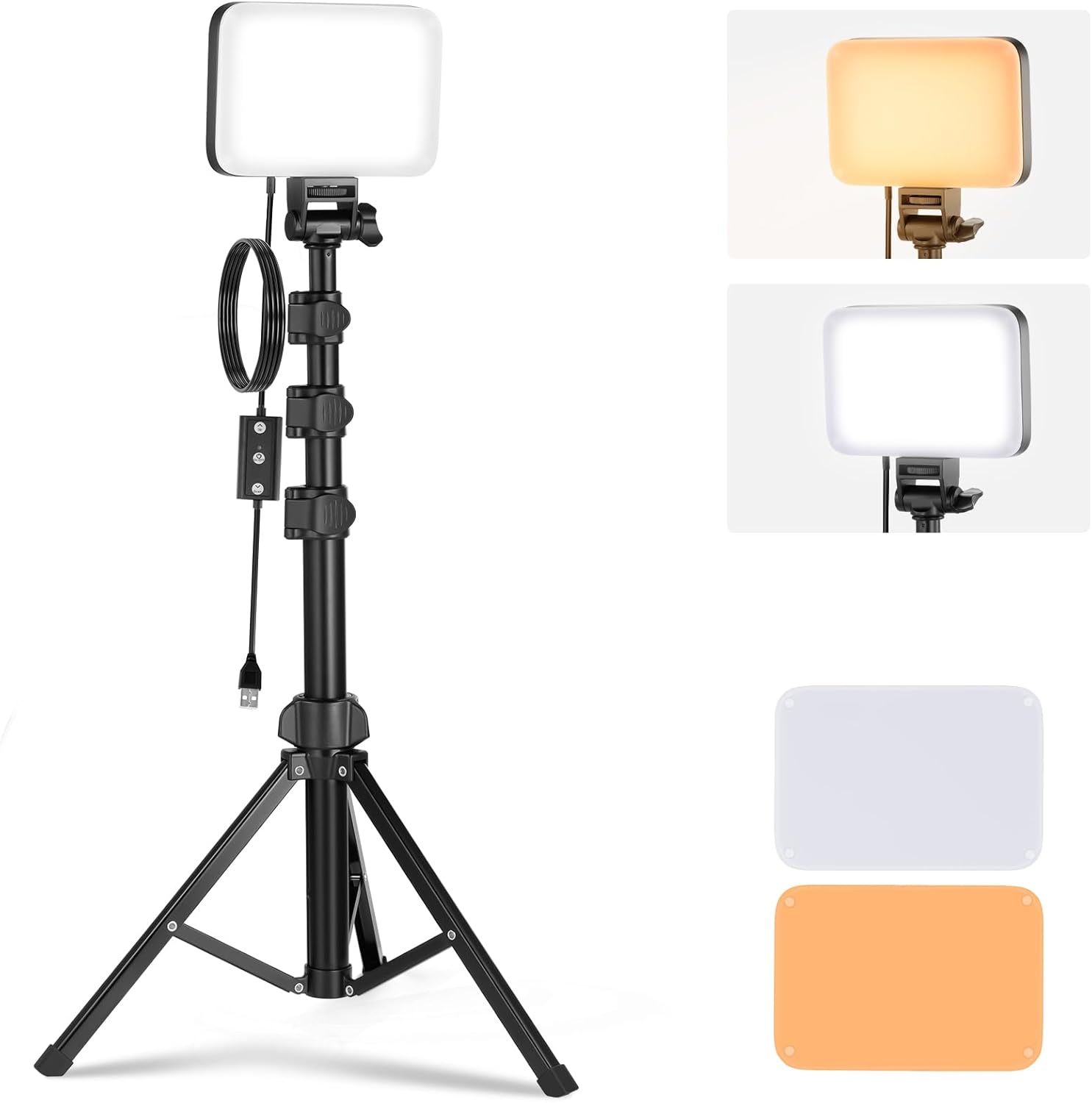 - ăLED Panel Video Lighting Kită With 66 LEDs, the 10W LED light equipment offers 750lux illuminance at 0.5m (with color filter attached), 3200K & 5600K bi color temperature, CRI>95. A portable photography tripod stand is included for flexible positioning, 2 color filters for personalized lighting. For makeup artist photos or streams, barber, selfie, Tiktok/YouTube recording, podcast, Facetime, Zoom call, video conference, streamer live streaming, film vlogging, camera filming, studio photoshoot