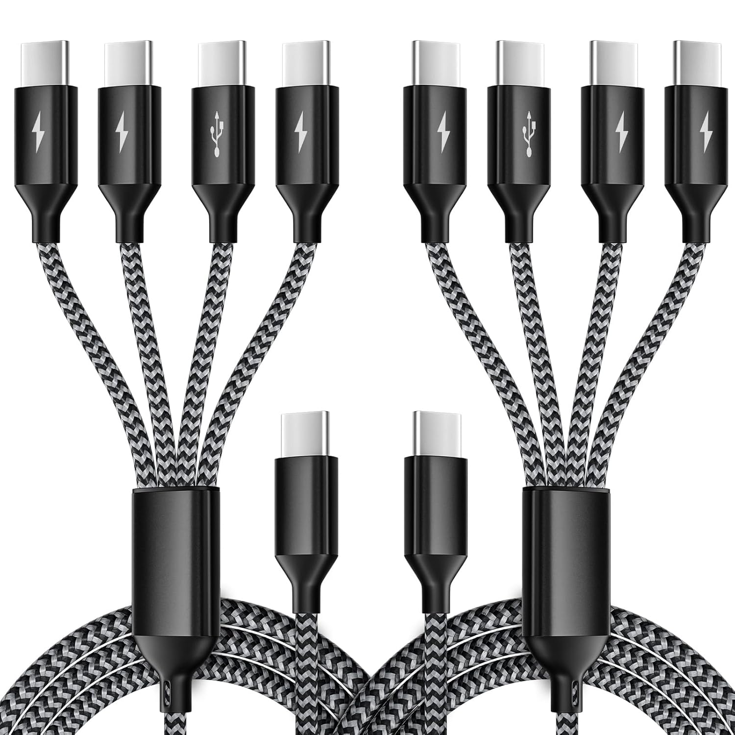 USB C Splitter Multi Charging Cable 2Pack, Dual Type C Charger Cord,4 in 1 Multiple Nylon Braided Cable with 4 Type-C Connectors Compatible with iPhone 15 Pro Max/Samsung Galaxy/Tablets/Google-5FT.
