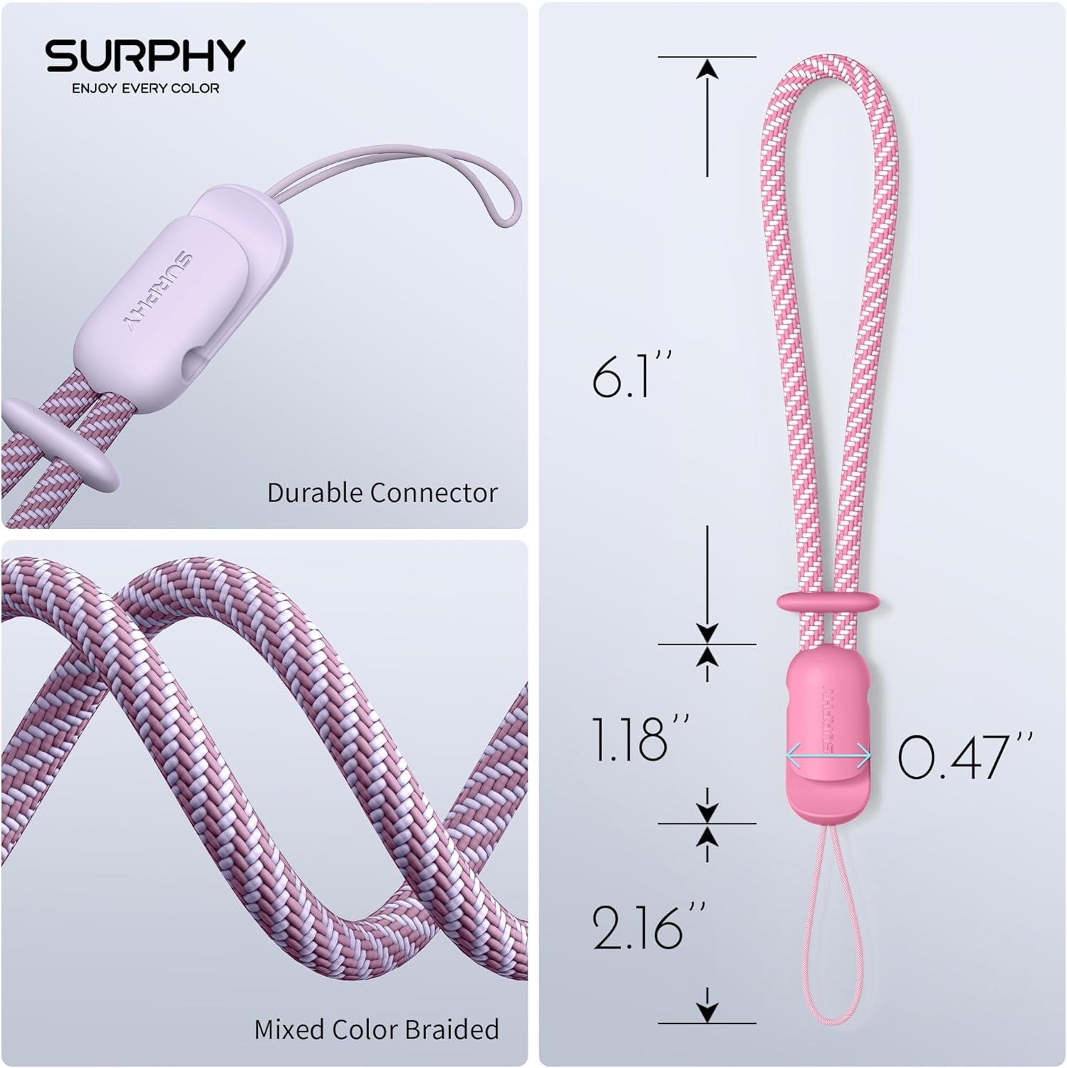 SURPHY 2 Pack Phone Lanyard for Cellphone Case, Phone Wrist Strap for Case, Cellphone Strap with 2-Color Braided, Charm Wrist Lanyard for Women, Cellphone Wrist Lanyard for Women, Rose Pink & Lilac