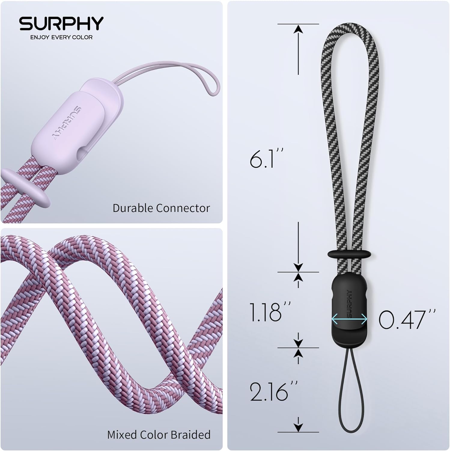 SURPHY 2 Pack Phone Lanyard for Cellphone Case, Phone Wrist Strap for Case, Cellphone Strap with 2-Color Braided, Charm Wrist Lanyard for Women, Cellphone Wrist Lanyard for Women, Black & Lilac