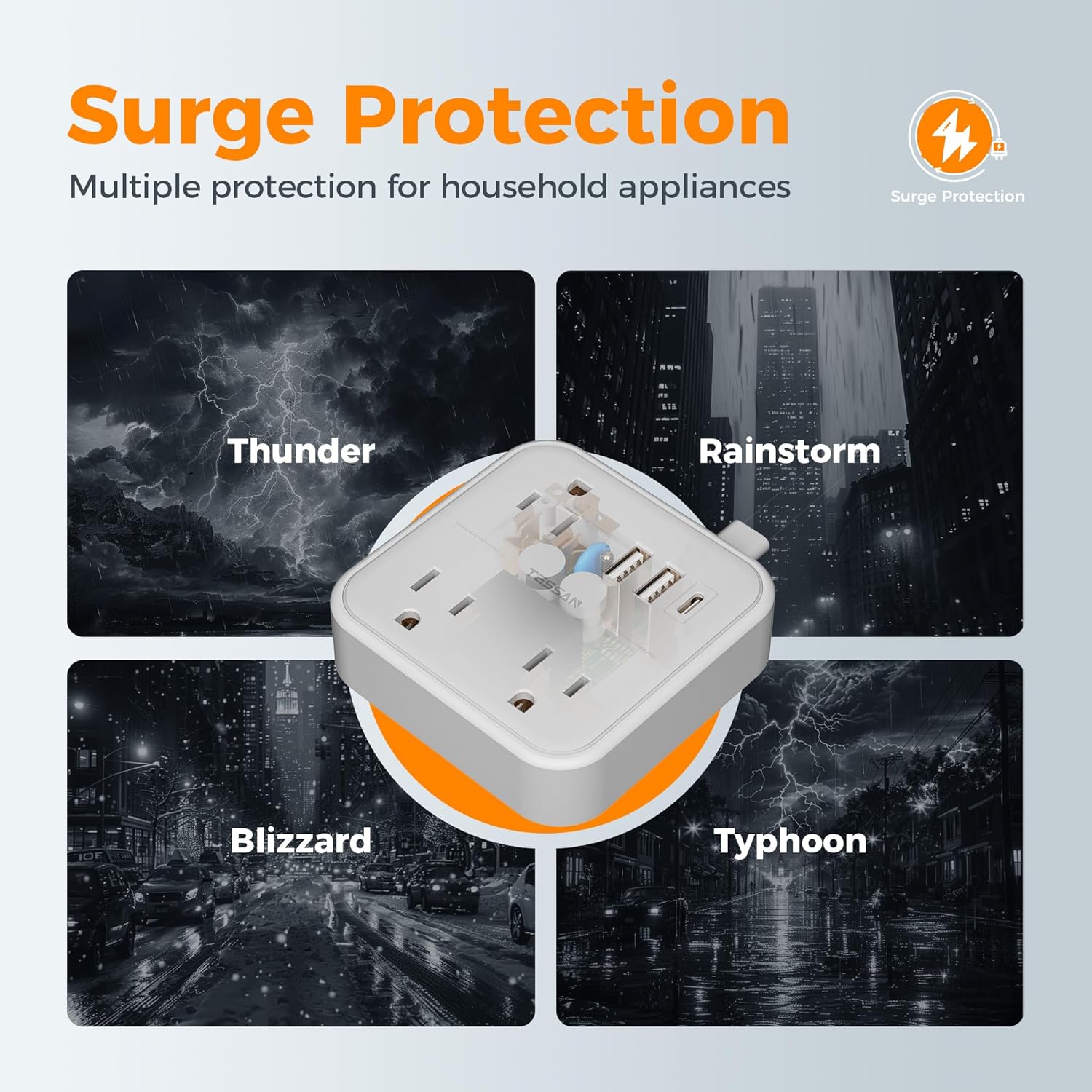 - Space Saving: The size of this USB power strip is 3.46Γ3.46Γ1.05 inch, saving the space of your desktop and bench; Surge protector power strip is suitable for use in dorm room, home, office, bedroom, etc