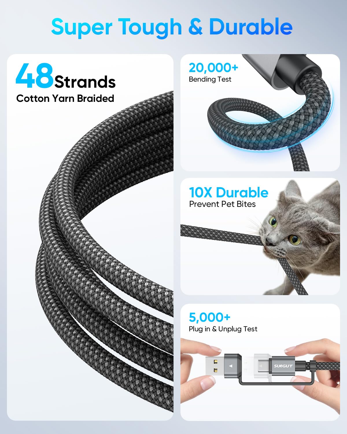 - 【Universal Compatibility】SUNGUY usb to c cable features four connectors, allows you to effortlessly power and data transfer for most devices, including the latest iPhone 16/15/14, iPads, Samsung Galaxy smartphones, MacBooks, tablets, and more.