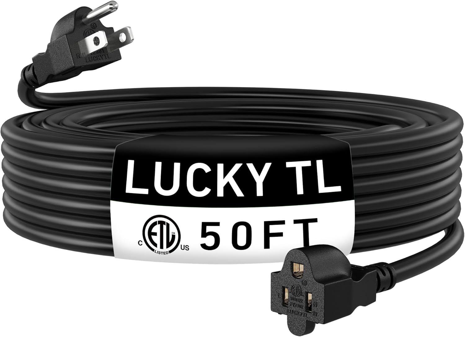 LUCKY TL Indoor Outdoor Extension Cord, 16/3 Gauge Black Long Extension Cord 50ft, Waterproof Flexible Case, Made of Pure Copper, 13A 1625W 16AWG SJTW, 3 Prong Heavy Duty Wire, ETL