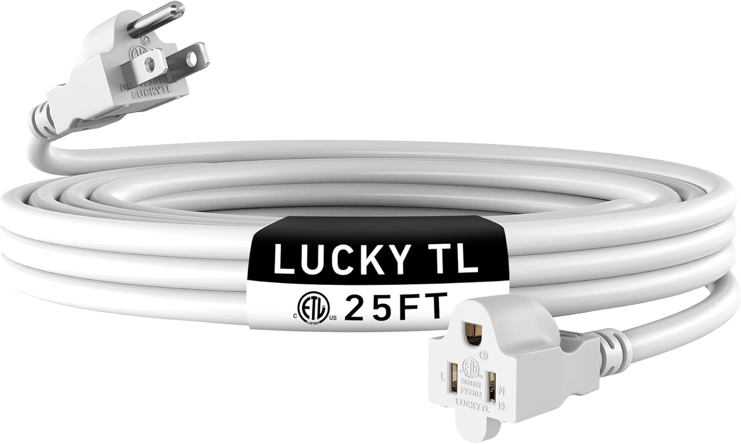 LUCKY TL Indoor Outdoor Extension Cord, 16/3 Gauge White Long Extension Cord 25ft, Waterproof Flexible Case, Made of Pure Copper, 13A 1625W 16AWG SJTW, 3 Prong Heavy Duty Wire, ETL