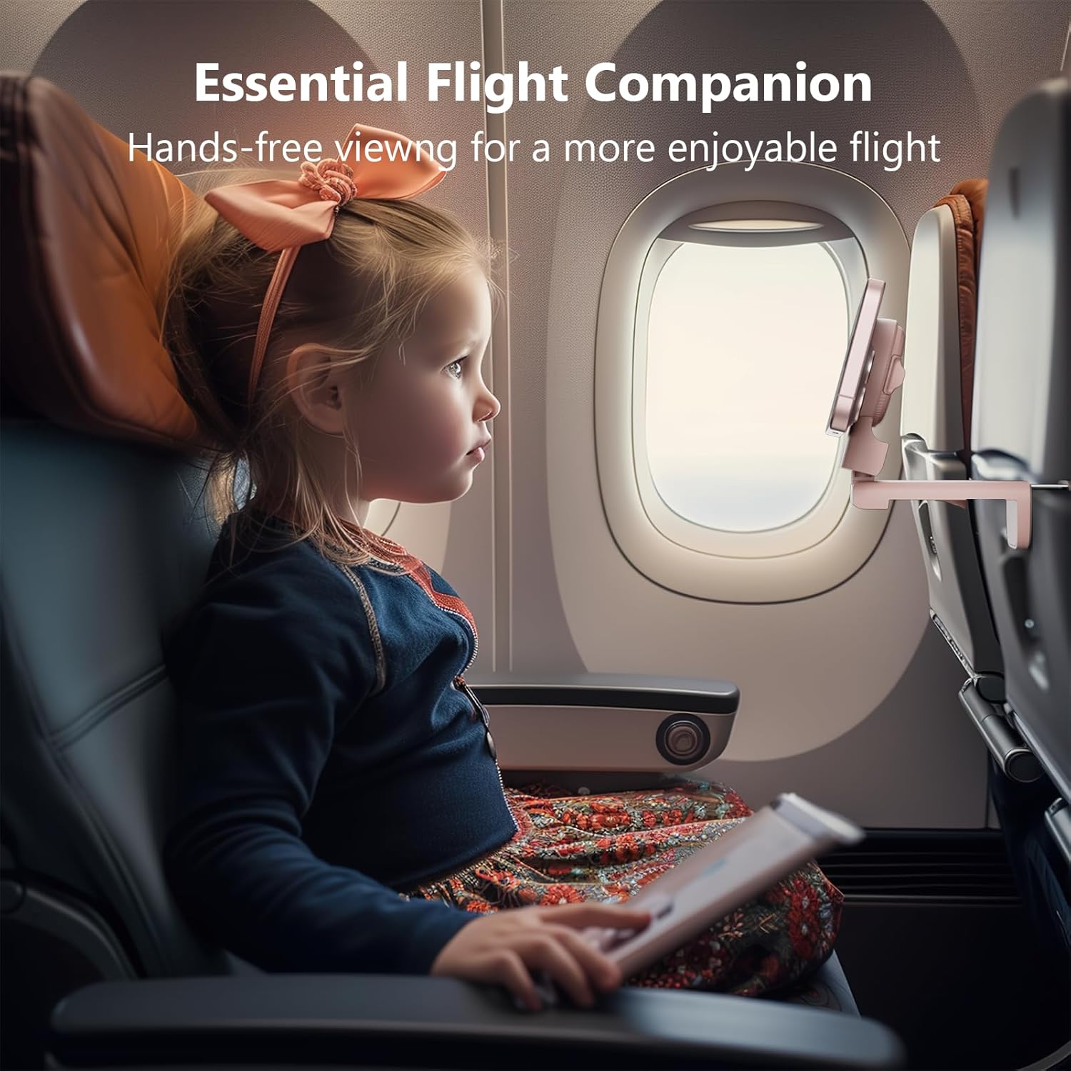 MiiKARE Travel Essentials Magnetic Airplane Phone Holder, Universal Handsfree Phone Mount for Flying with 360 Degree Rotation, Travel Must Haves Phone Stand for Desk, Tray Table, Black&Pink