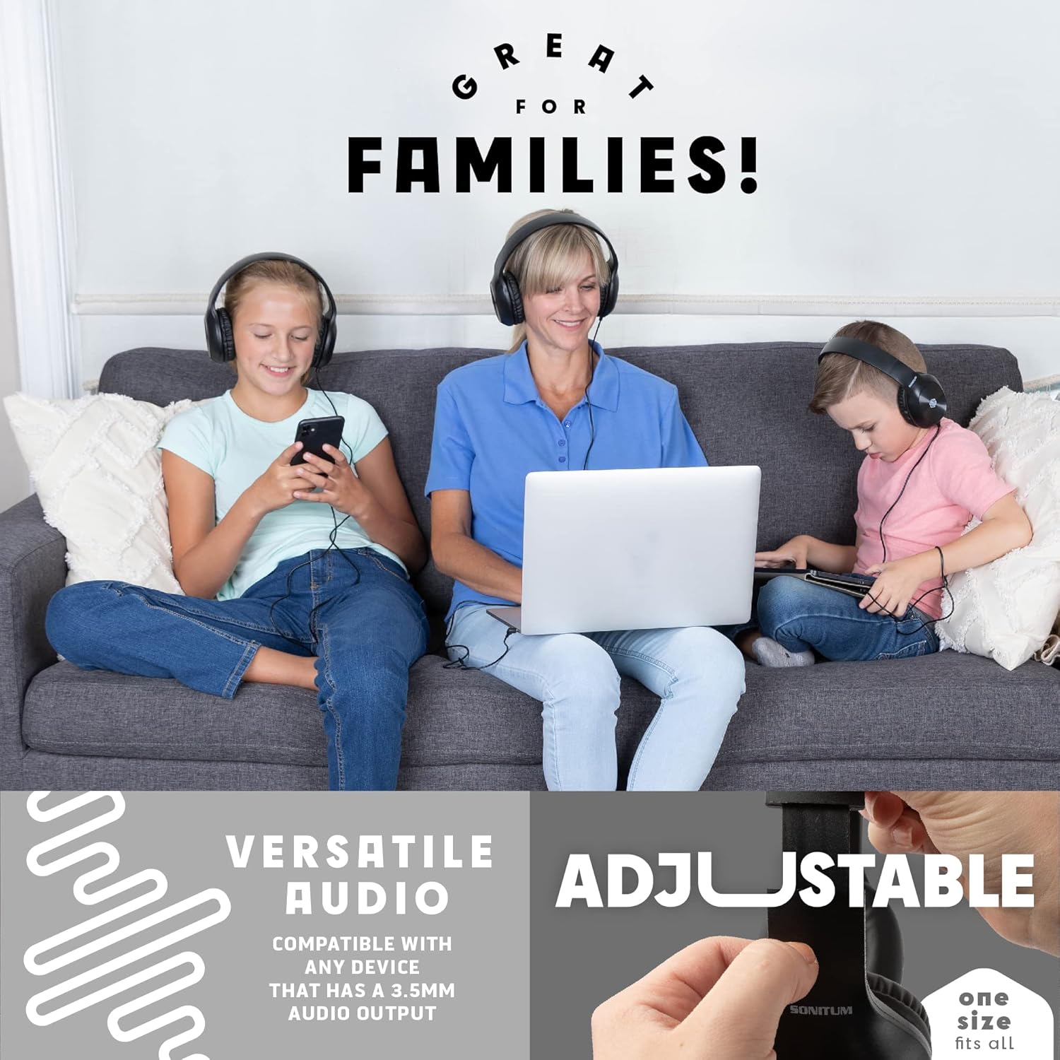 - Kid-Strength Tech β Choose adjustable, swivel-cup headphones with above-average durability. We make comfy, cushioned, on-ear headphones with materials selected to withstand the energy of young students.