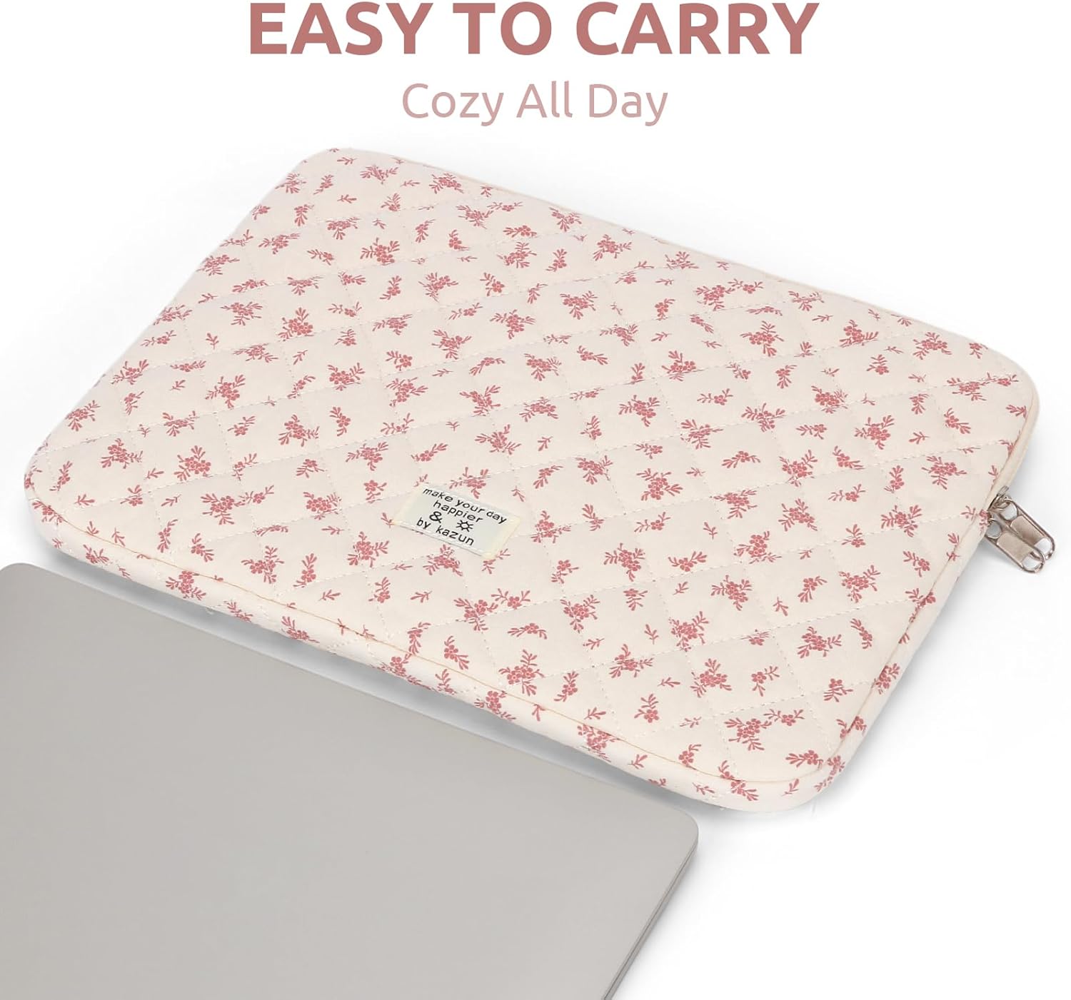 Puffy Laptop Sleeve 13-15.6 Inch Cute Quilted Laptop Protective Case Padded Floral Computer Sleeve for MacBook (A-Pink, 11 Inch)