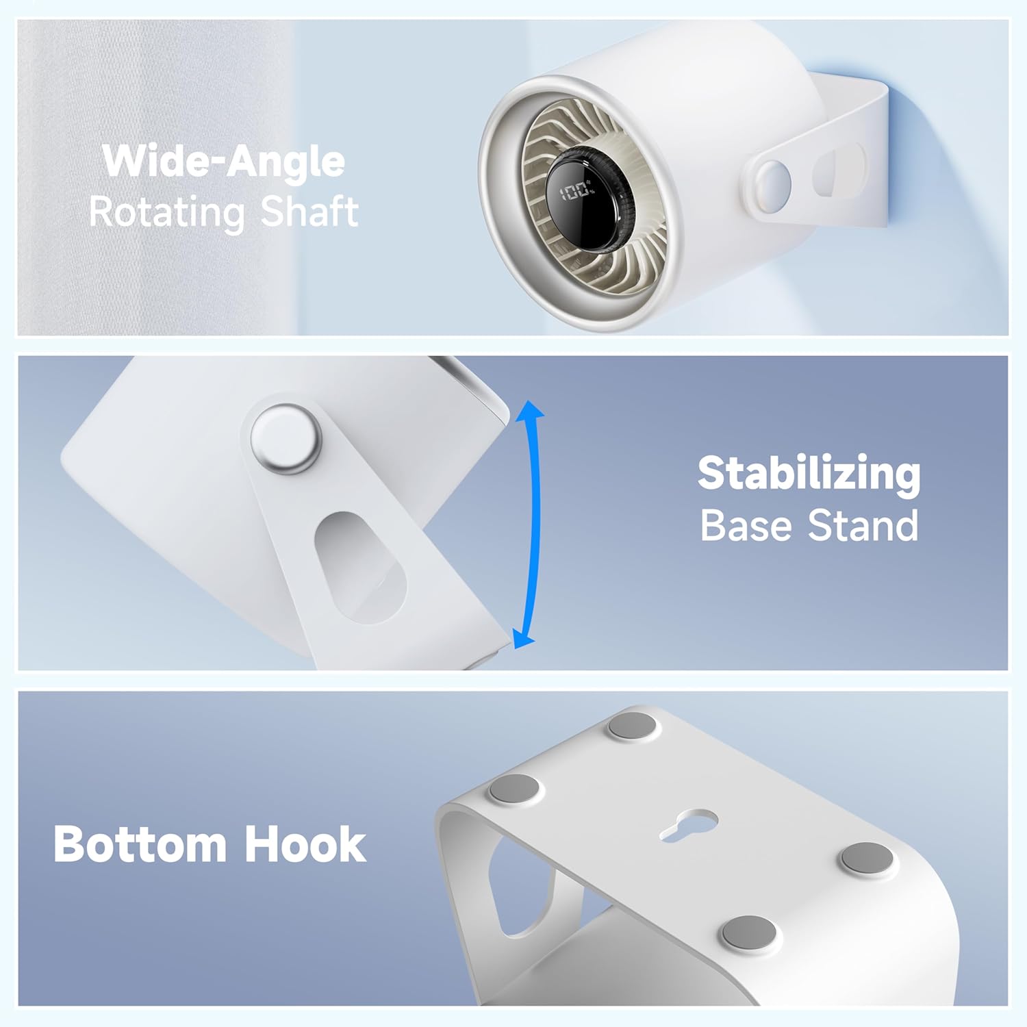 - 【Omni-Scene Versatility】Compact cylindrical body fits anywhere with 360° flexible placement. Hidden mounting clips + adhesive pads enable three tool-free setups—desk standing, wall hanging, or tent suspension. Perfectly adapts to bedrooms, offices, kitchens, or camping adventures.