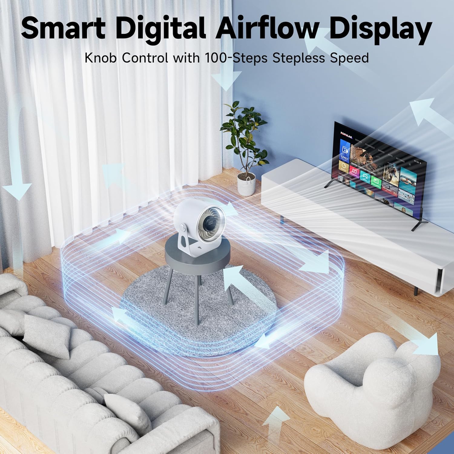 - 【Ultra-Silent Turbo System for Desk Fans Small Quiet】Engineered with an innovative turbocharged motor and fluid dynamics noise reduction, operates at a whisper-quiet 28.8 dB—quieter than rustling book pages (30 dB). The 7-blade spiral turbine spins at 3,000 RPM, paired with a circular airflow duct that delivers 150% stronger wind than conventional fans. The 1-100 stepless dial lets you glide from a gentle breeze to hurricane-force cooling with a flick of your wrist.)