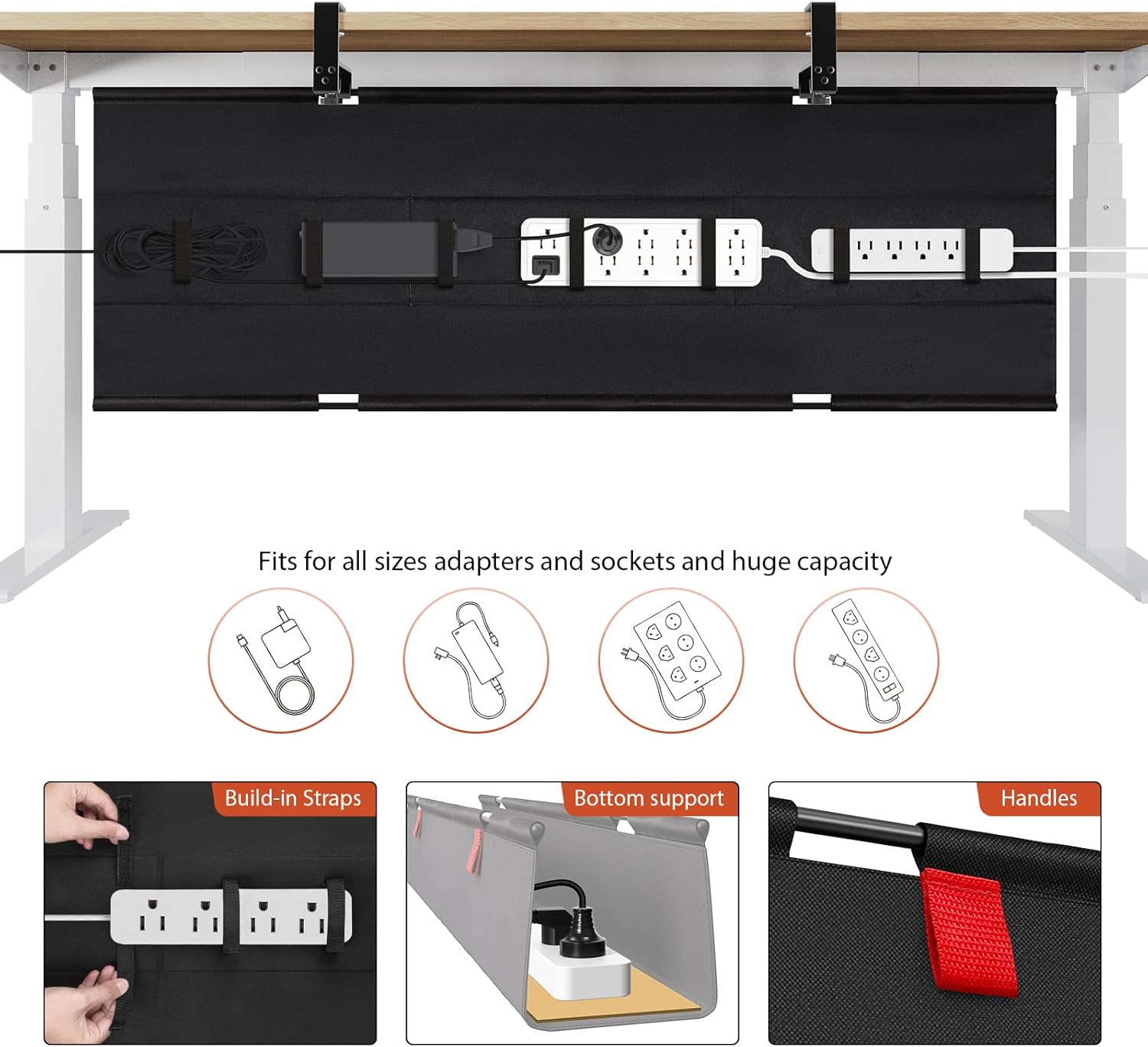 - Large Capacity and Durable. The cable tray size 48"L x 5.5"W x 5.5"H, it fits all size adapters and sockets, holds and hides everything under your table. It is ideal cable management under desk.