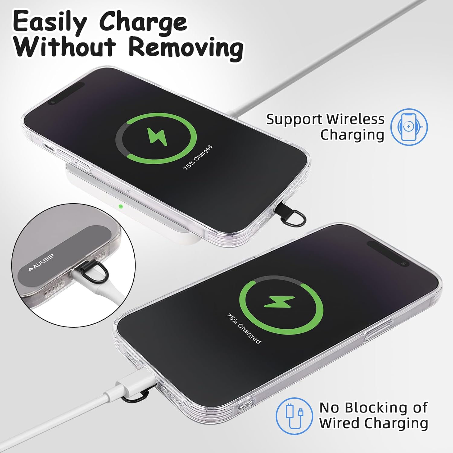 AULEEP Universal Phone Lanyard Corssbody, Anti-theft Phone Strap for Women and Men, Adjustable Cell Phone Neck Lanyard for all iPhone and Smartphone, with 2 Phone Tethers (Metal & Plastic), Black