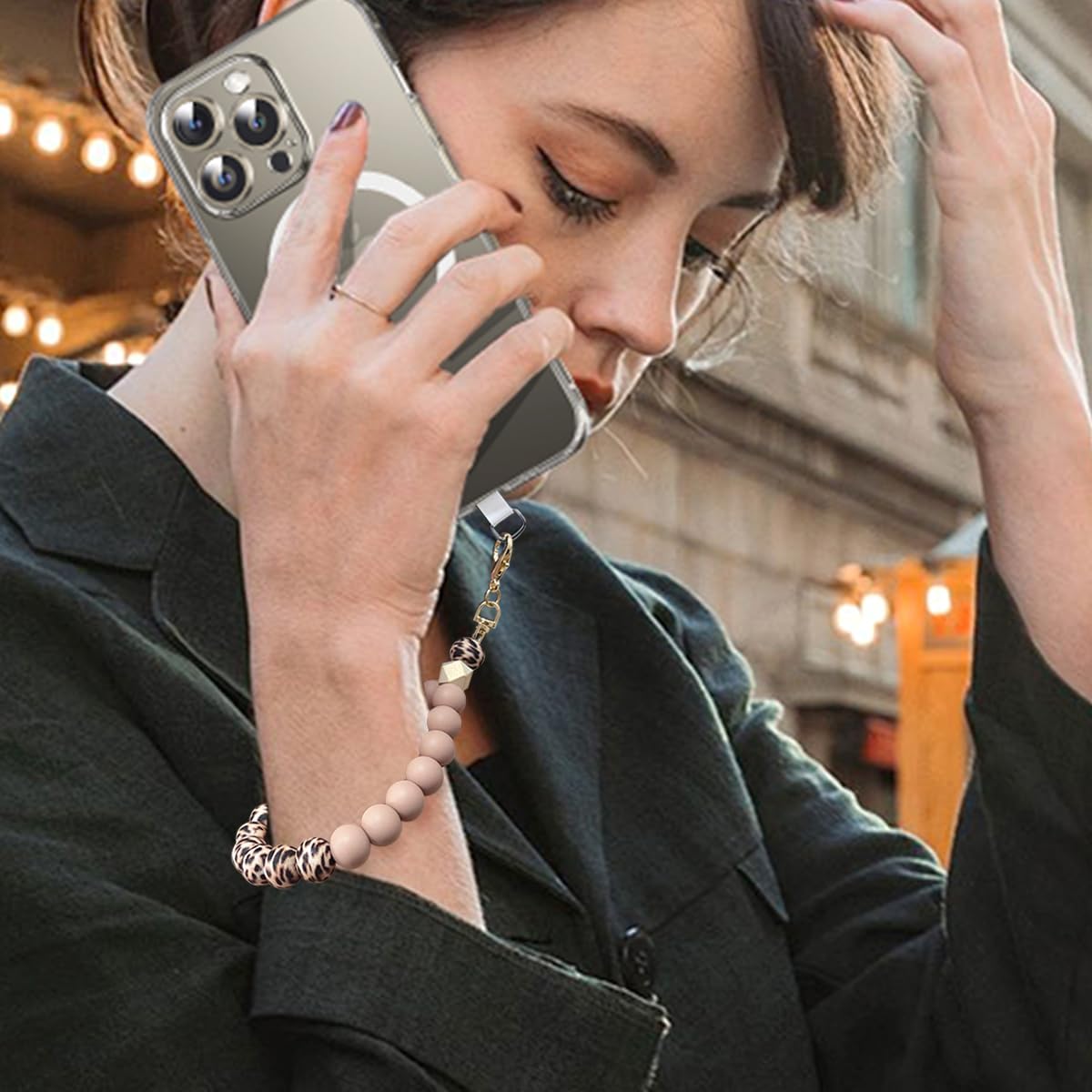 Marble Silicone Beaded Phone Wrist Strap, Cellphone Lanyard with Tether Tab, Elastic Hands-Free Wristlet Bracelet