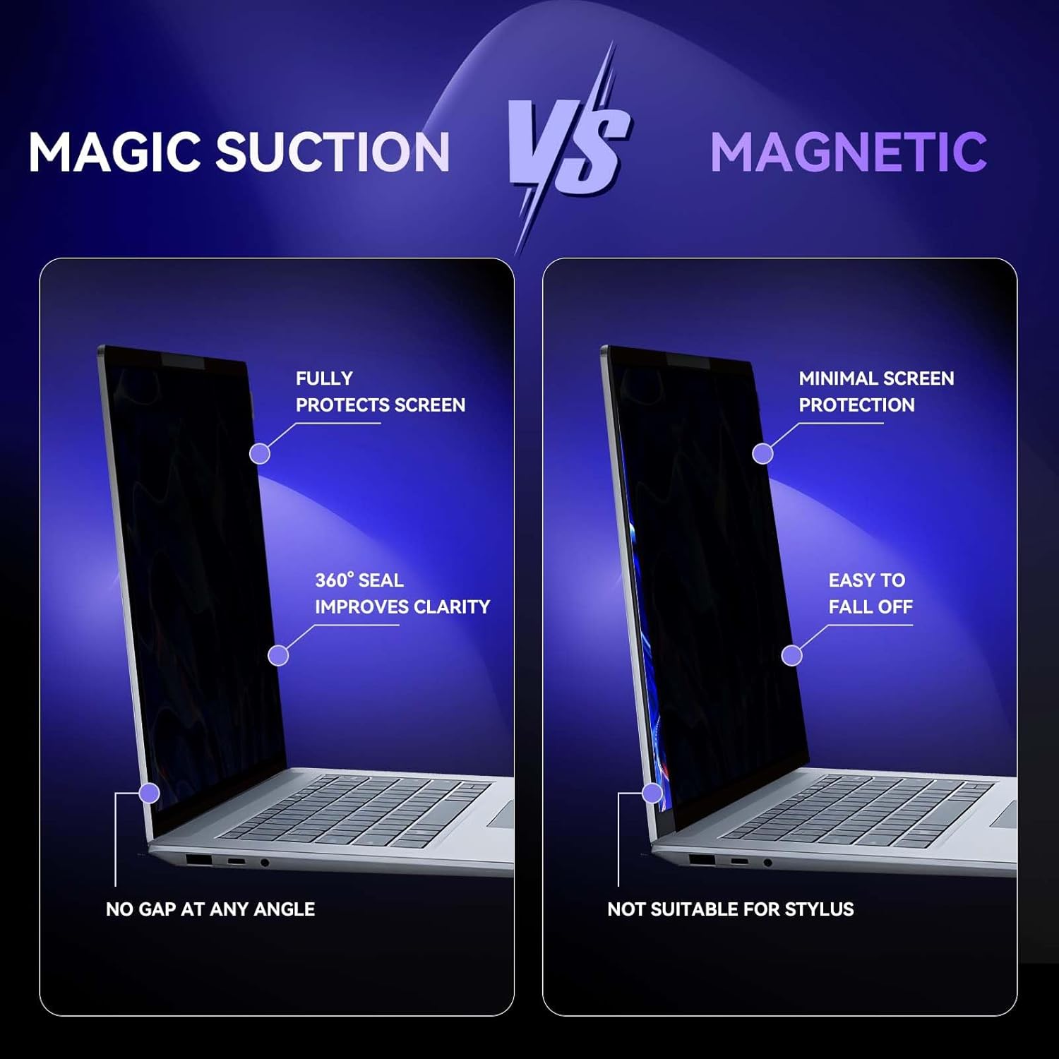 - 【Ugraded Design】- The ultra-thin Paper-like design maintains the device's true touch sensitivity and is compatible with stylus pens. Surface Privacy Screen Filter is reusable, updated with the Nanoglue strip at frame. It's never been so easy to install this privacy film just in seconds and it can be fully and tightly attached on the screen, easy On and Off, bubble free.