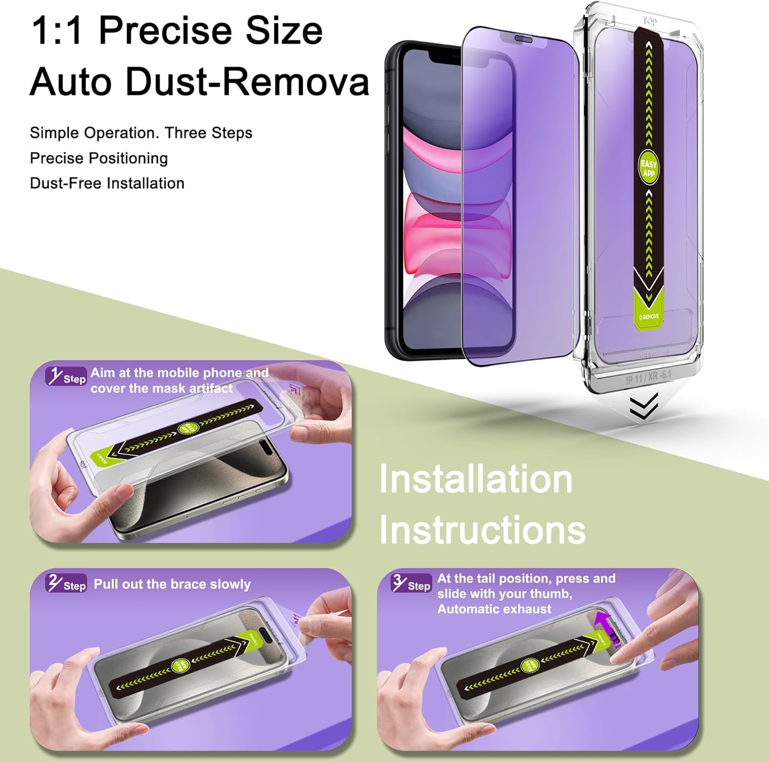 - Auto Dust Removal & Easy Installation: The SY SHANGYAN Anti Blue Light Matte Screen Protector for iPhone 11/XR features advanced auto dust removal and self-aligning technology for a flawless,bubble-free install every time.Just place the frame,pull the tab,and press to push out any air bubbles.Installation is quick,easy,and hassle-free.For best results,watch our step-by-step installation video before applying