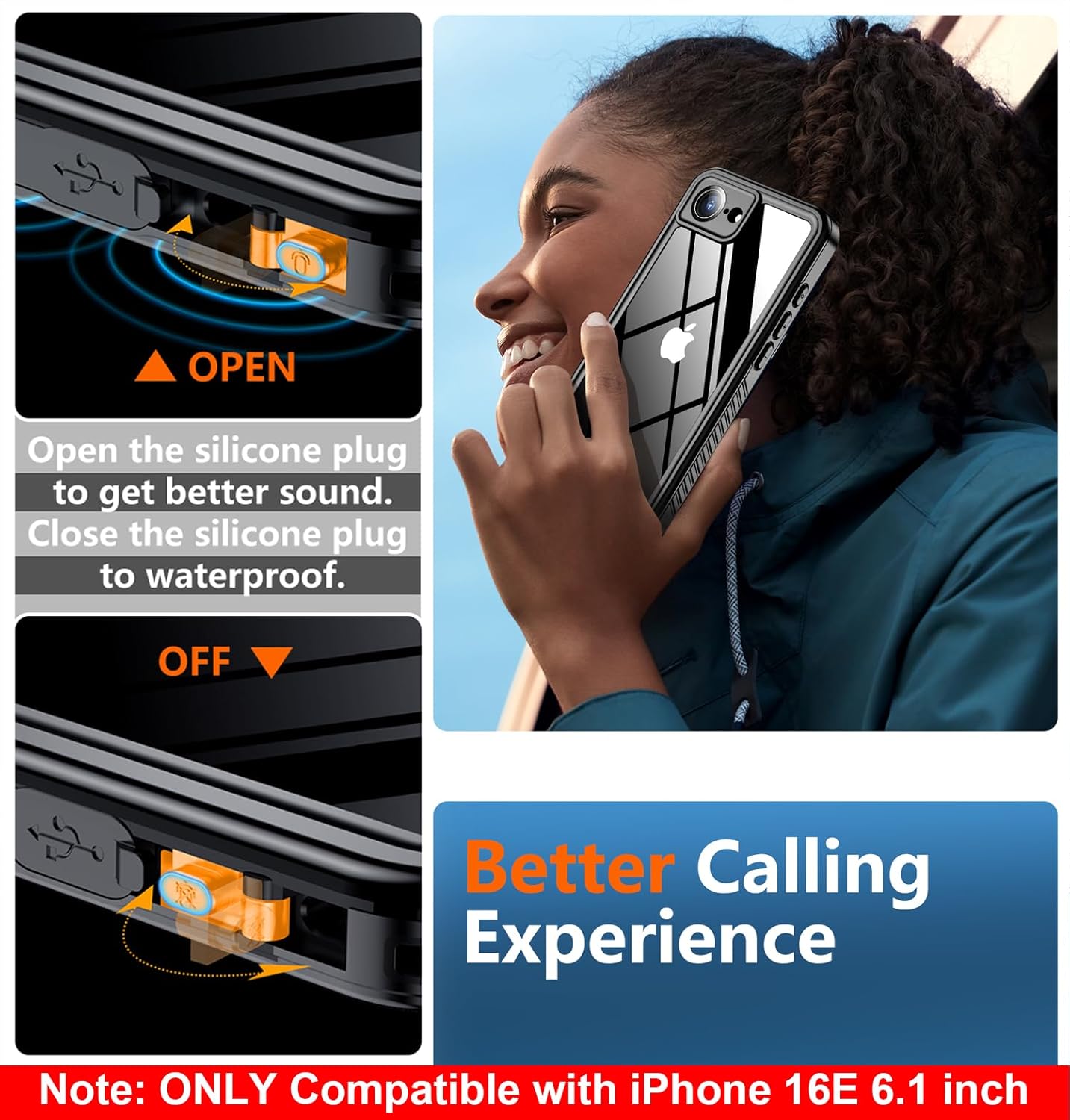 - 【IP68 Waterproof for iPhone 16e】: This iPhone 16e waterproof case is resistant to water, dust, dirt, snow and spills and splashes from everyday liquids. In addition, the washable design ensures easy cleaning and keeps your phone and case always stay clean and looks like new. (Note: Please check all of the plugs are sealed before using)