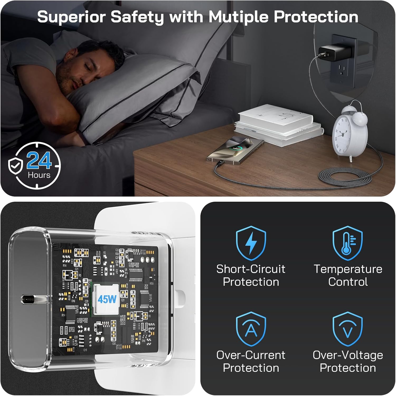 - 【What's Included】45W USB-C Charger Block x2, 3.3FT Type C to Type C Charger Cord for Samsung Phone x2, backed up by our worry-free 12-month warranty and 24/7 friendly customer support.