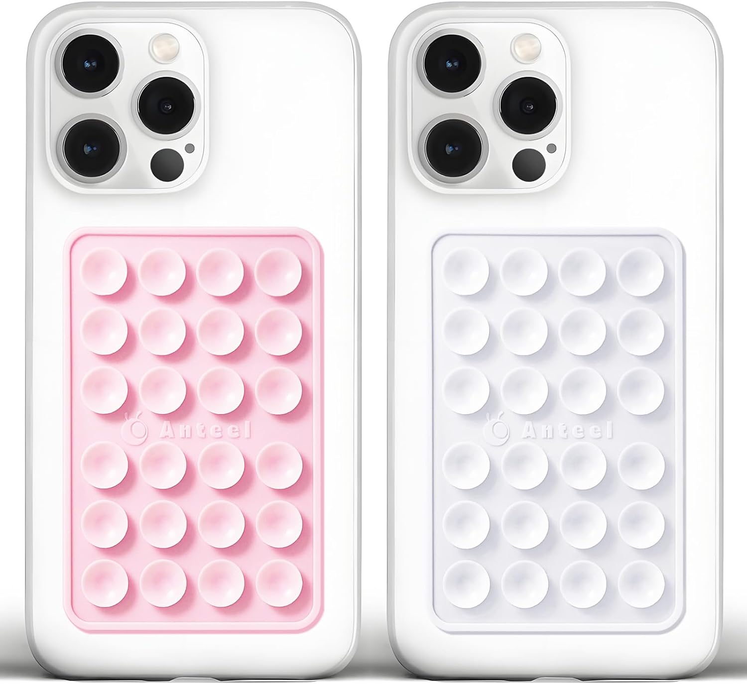 Anteel Medium-Sized Silicone Suction Phone Case Adhesive Mount, Enhanced Suction Power and Upgraded Thickened Sticky Phone Grip, Durable, Hands-Free Sticky Phone Holder, 2.28"x3.46" (LPK&WHT)