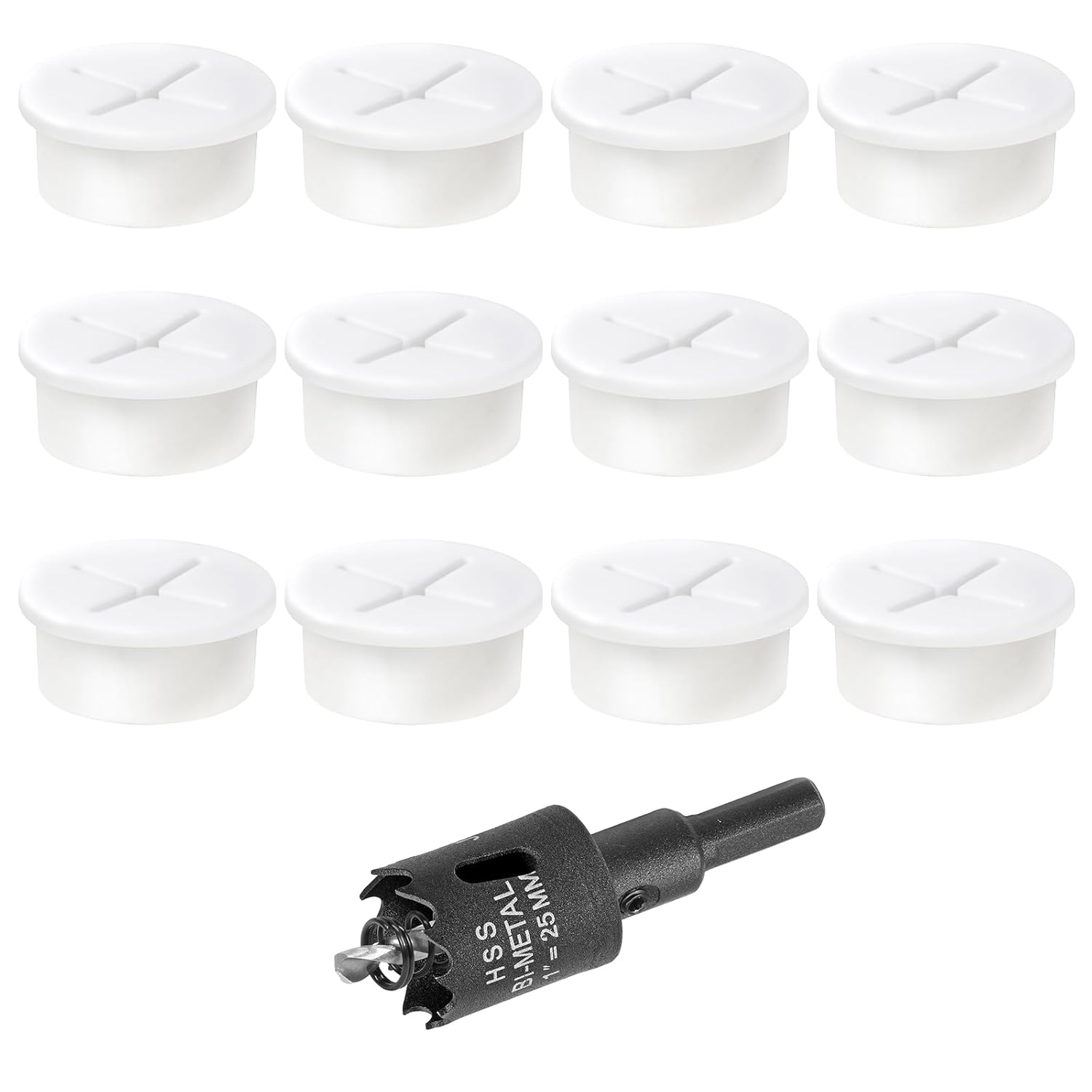 1" White Desk Grommet, JTemgle Flexible Cable Grommet with Bi-Metal Hole Saw Cross Rubber Cable Hole Cover Wire Organizer Caps Desktop Cord Management for Home Office TV Stands Tabletops, 13 Pieces