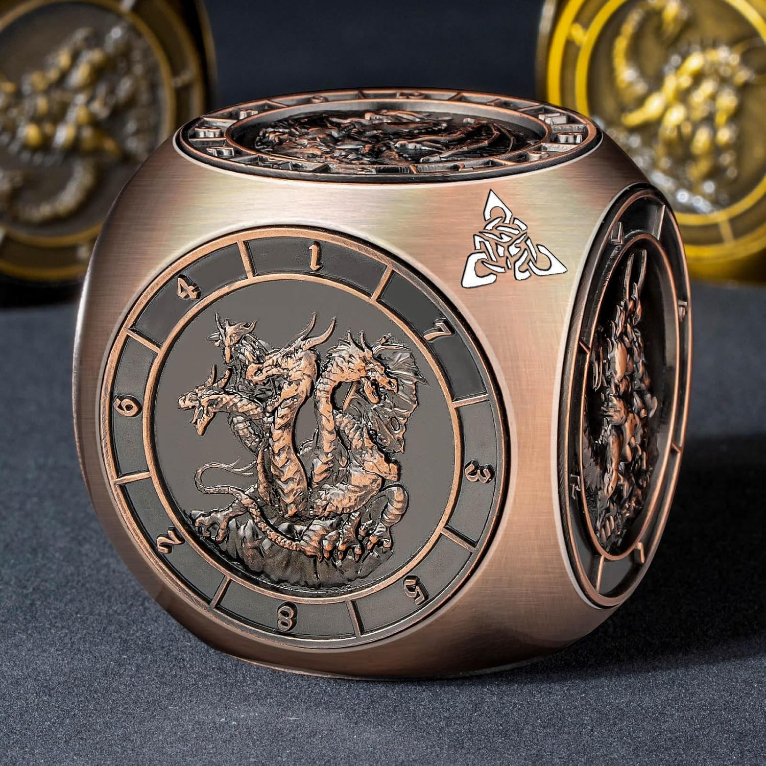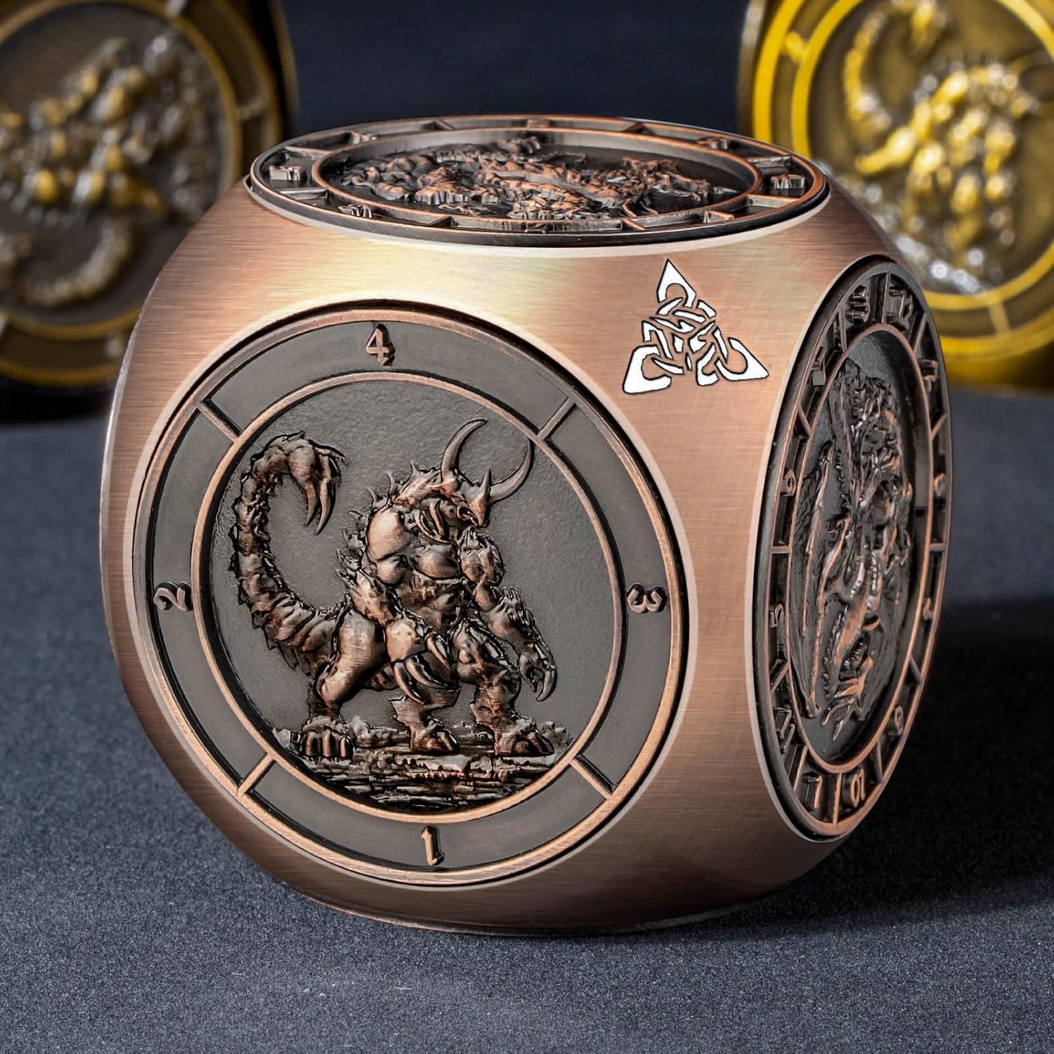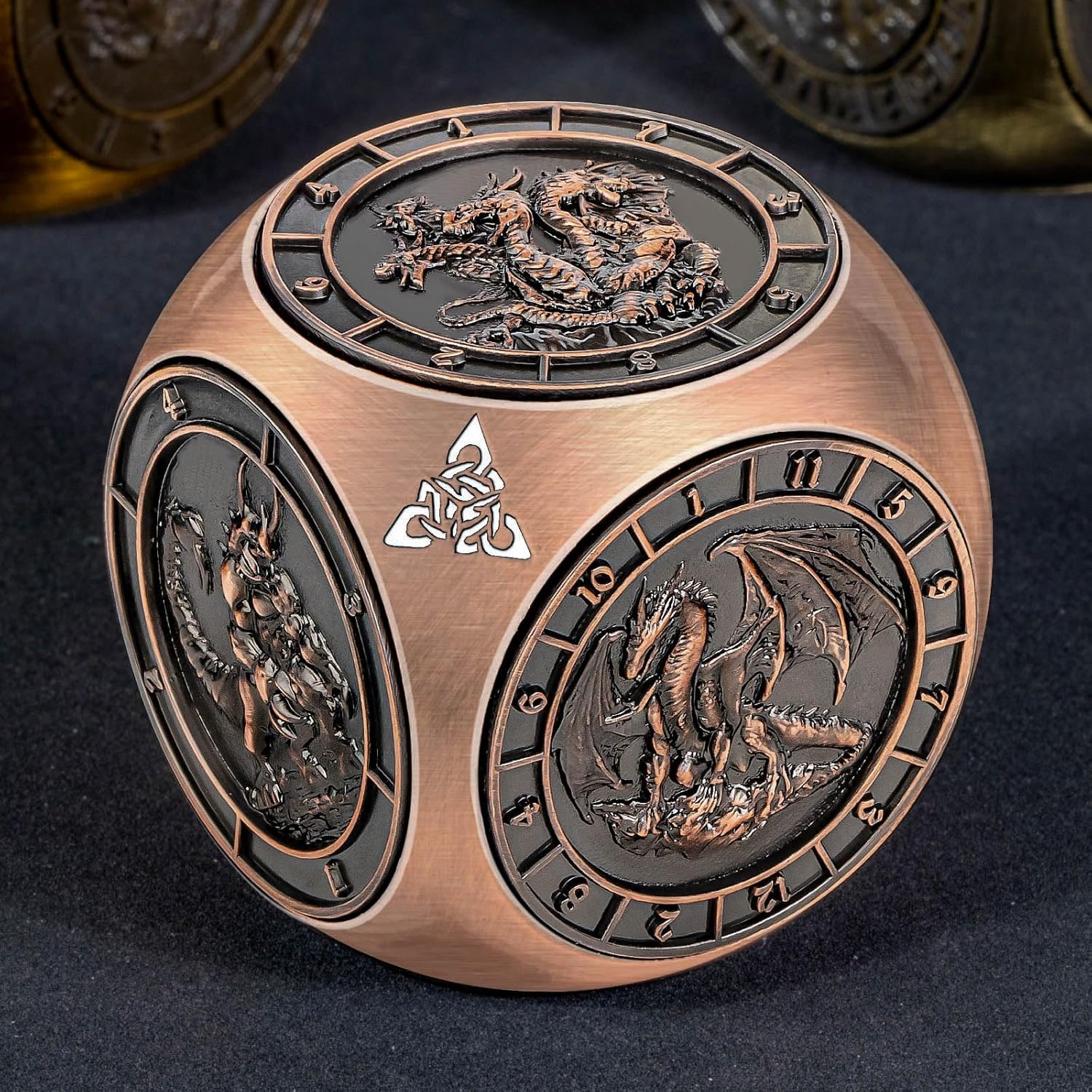 7 in 1 D6 Spinner DND Dice Set D&D, Metal Cube D and D Dice with Gift Box, Dungeons Dragons Role Playing Dice, Copper