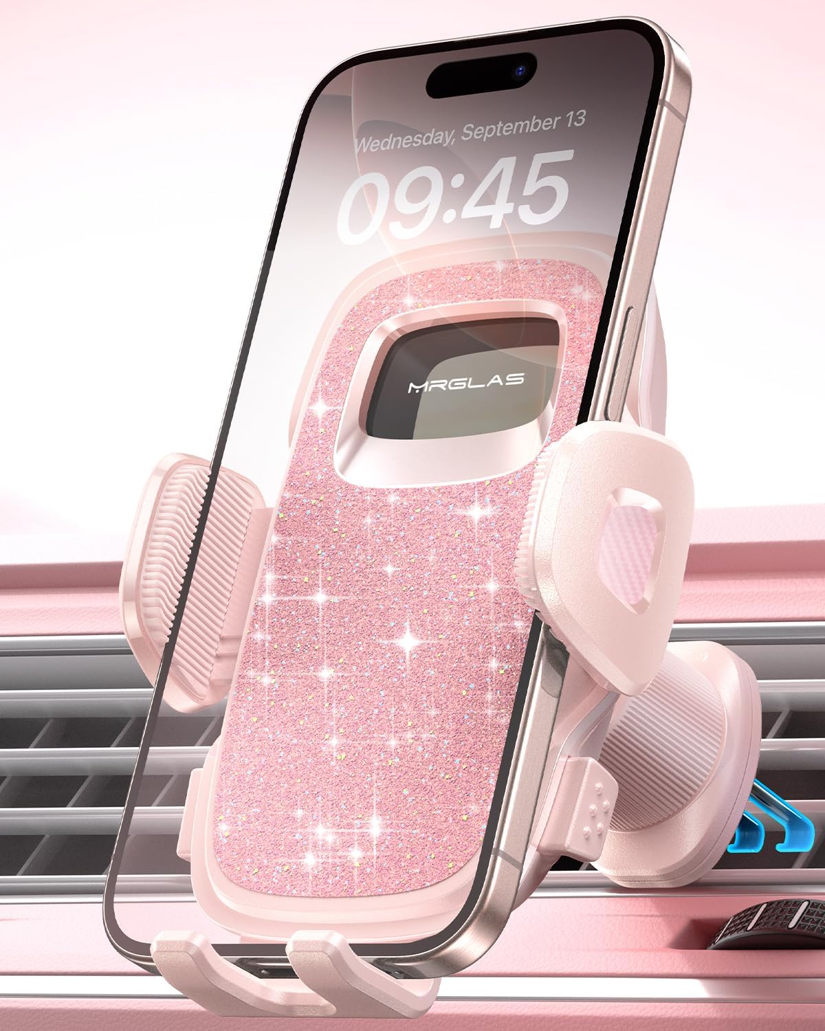 - Improved Stability with 4-Lock Protection – The MRGLAS car phone holder keeps your phone stable, whether you're navigating familiar streets during a family outing or cruising to your next business meeting. The 4-lock protection system, compatible with both vertical and horizontal air vents, ensures your phone stays securely in place, even during sharp turns or on bumpy roads. Note: Not suitable for round vents. Whether you’re heading to a client meeting or a family trip, this mount offers peace of mind on every drive