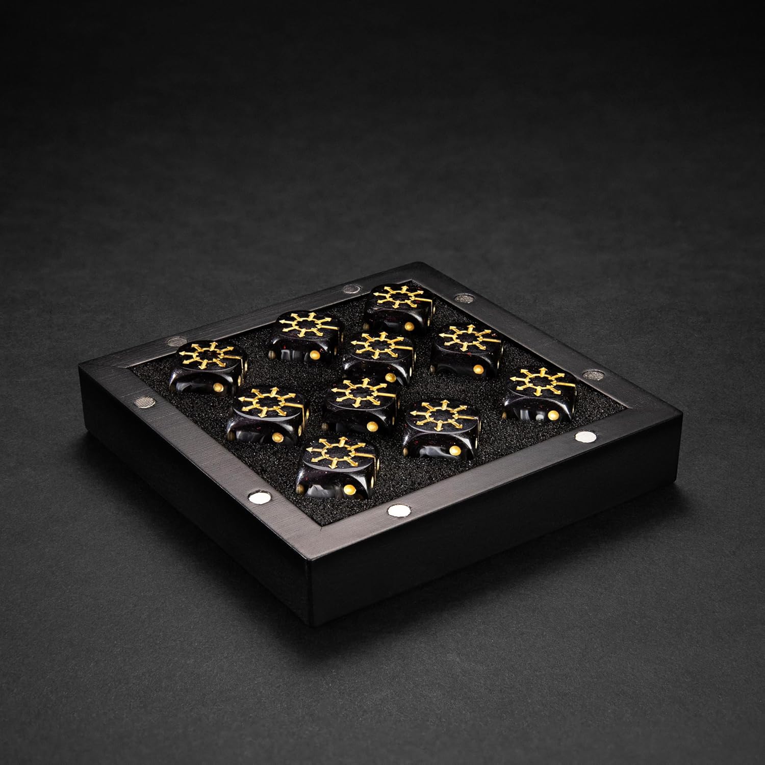 - ⭐ Premium Set for True Warriors of Chaos – With your purchase, you receive: ✔ 10 six-sided dice (D6, 16mm) – perfectly balanced for wargames and strategy games. ✔ A black enamel-coated wooden box (10x10x3 cm) – offering reliable protection for your dice. ✔ Acrylic window with a gold-printed Chaos Star, making this set not just a gaming accessory but a true collector's piece.