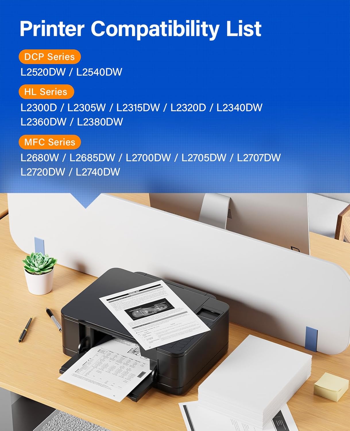 - Compatible Printer: Compatible with Brother "DCP-L2520DW, DCP-L2540DW, HL-L2300D, HL-L2305W, HL-L2315DW, HL-L2320D, HL-L2340DW, HL-L2360DW, HL-L2380DW, MFC-L2680W, MFC-L2685DW,MFC-L2700DW, MFC-L2705DW, MFC-L2707DW, MFC-L2720DW, MFC-L2740DW (Please check that your printer model matches the printer model of this toner cartridge before placing an order)