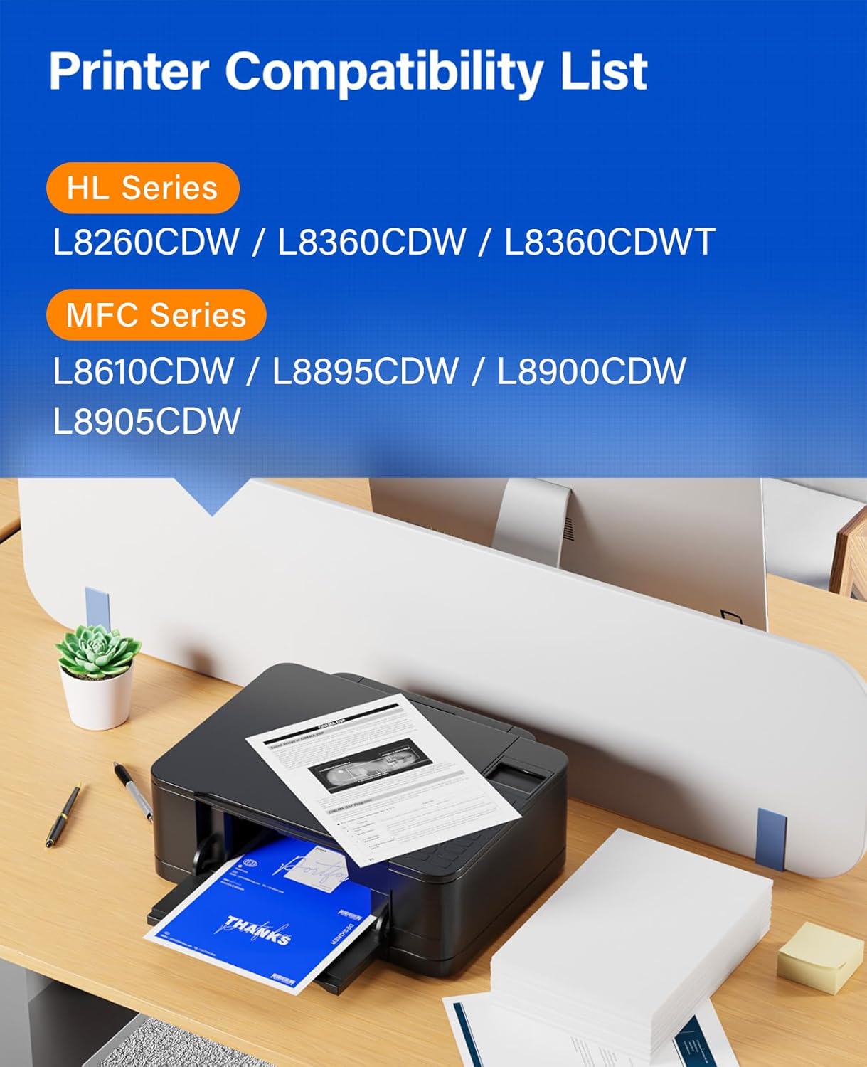 - Compatible Printer: Compatible with Brother HL Series: HL-L8260CDW, HL-L8360CDW, HL-L8360CDWT, MFC-L8610CDW, MFC-L8895CDW, MFC-L8900CDW, MFC-L8905CDW (Please check that your printer model matches the printer model of this toner cartridge before placing an order).