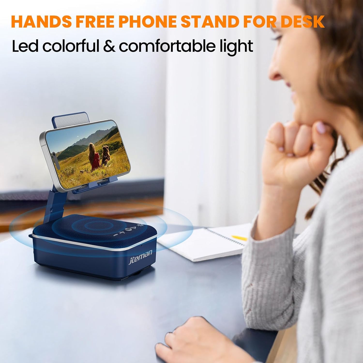- Newly upgraded multifunctional gadget: JTEMAN multifunctional device combines a portable Bluetooth speaker, cell phone stand, LED light, lanyard and built-in microphone. Whether you're indoors or outdoors, the detachable lanyard ensures it's easy to carry and perfect for all your adventures. It also brings great convenience for watching videos and making hands-free calls, Ideal birthday gift for women men!