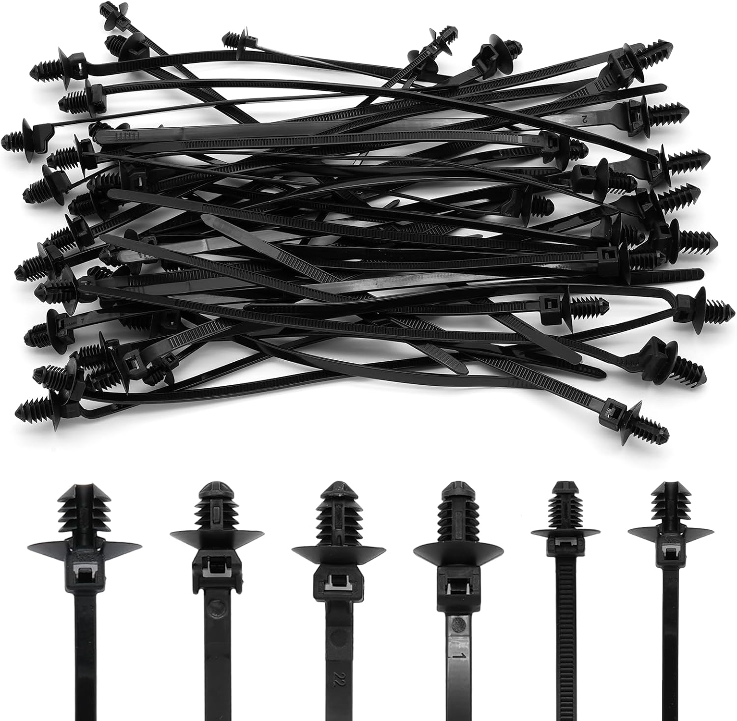 - Package Includes: 60 x push mount zip ties (including 6-types), perfect for bundling and categorizing cables and wire components for home, automotive, construction, and work.