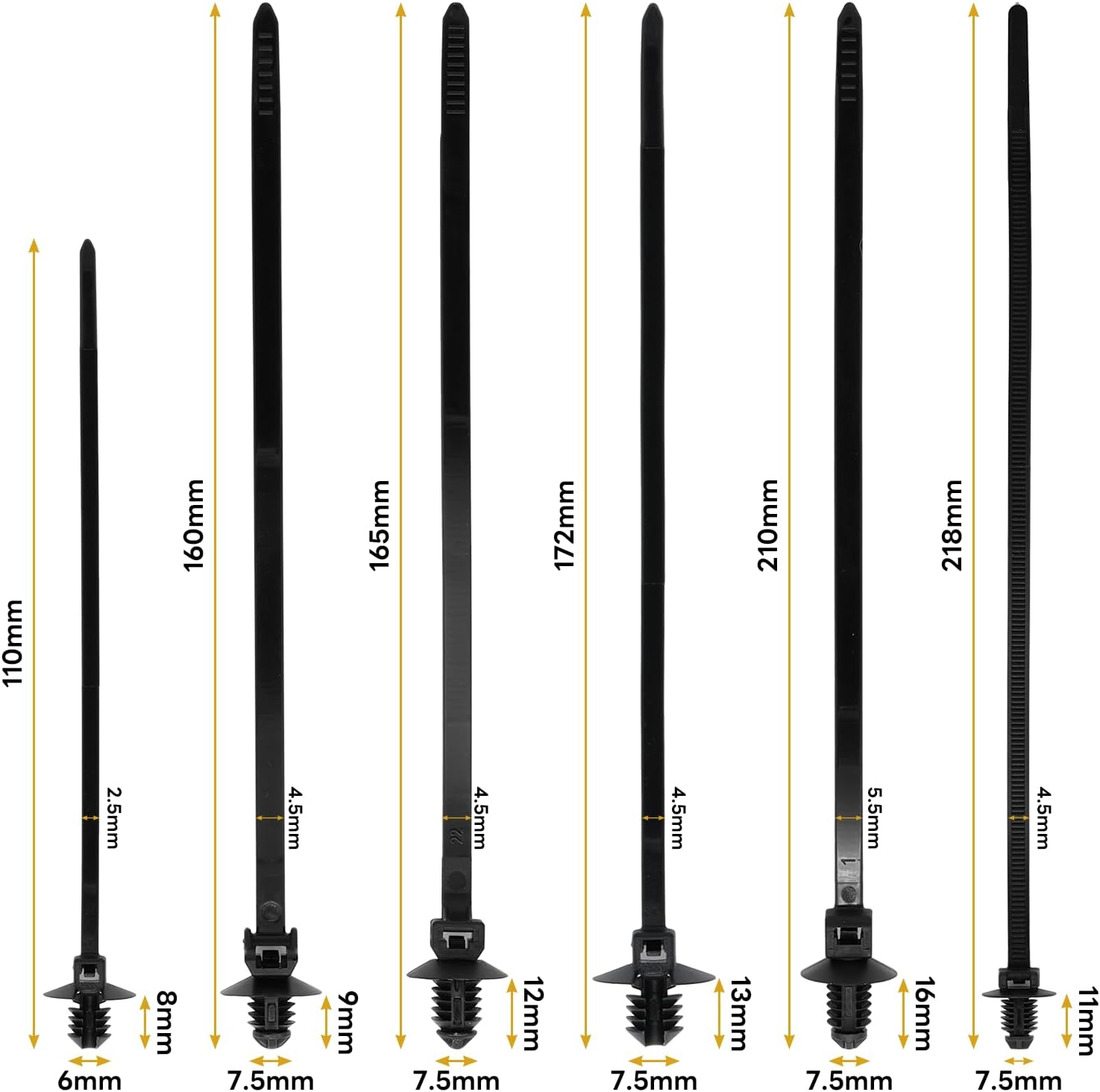 - Package Includes: 240 x push mount zip ties (including 6-types), perfect for bundling and categorizing cables and wire components for home, automotive, construction, and work.