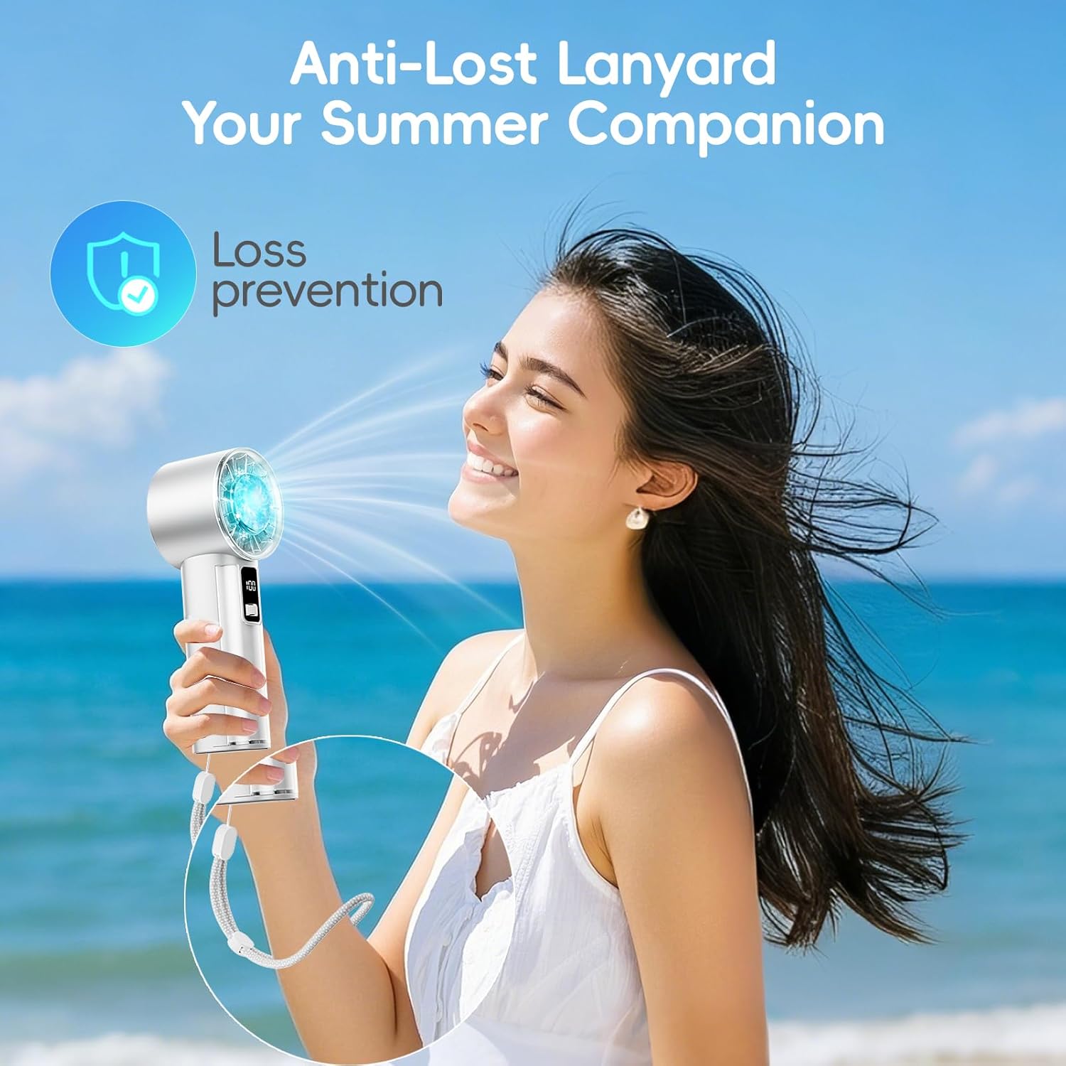 PANERGY High Speed Handheld Fan with Ice Cooler,1-100 Speed Adjustable Mini Turbo Fan, 4000mAh Battery Rechargeable & Digital Display,Gifts for Women Men Travel/Office/Beach/Camping(White)