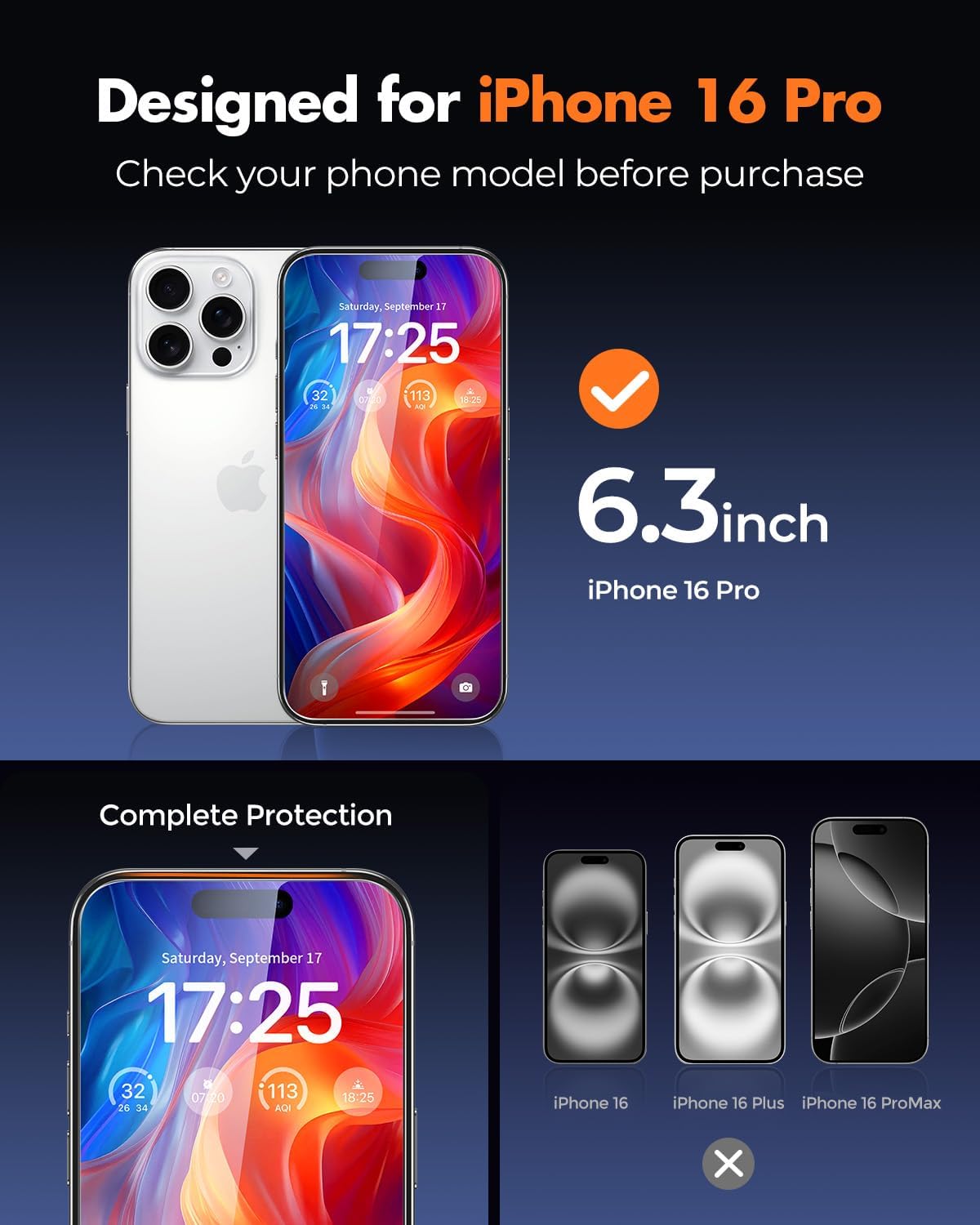 - Compatible Devices : iPhone 16 Pro-6.3 inch