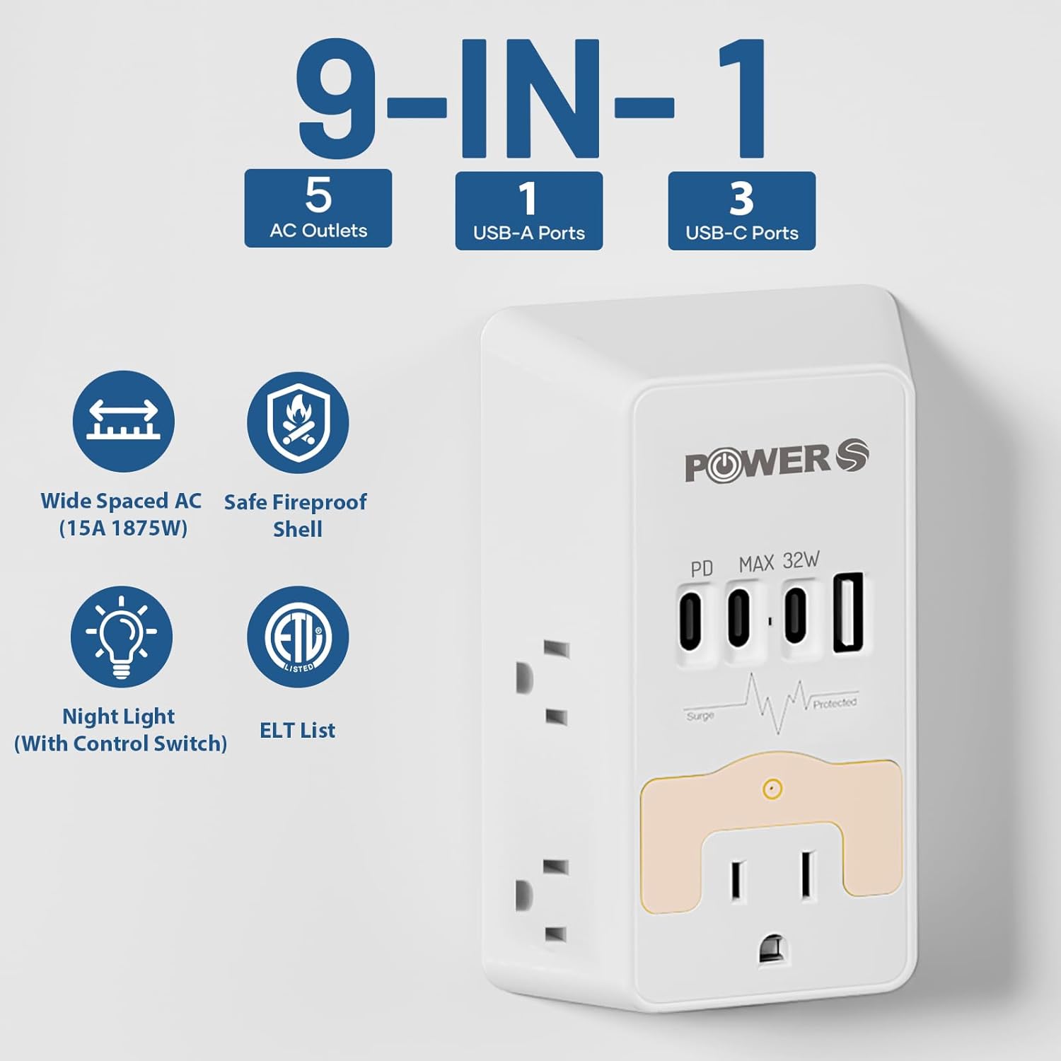 - Built for Safety: 1500J surge protection shields devices from power spikes, paired with a UL94 V-0 fire-safe shell tested to withstand extreme heat (1382ยฐF). ETL/FCC certified for reliable safety