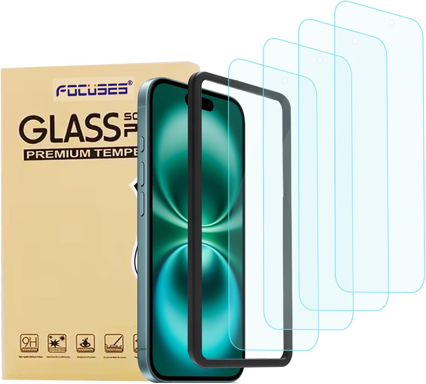 - 【4 Pack Accessories for iPhone 16,iPhone15 6.1in】 This product includes 4 pack iPhone 16,iPhone15 screen protector and Wet/Dry Wipes, Dust Removal Stickers。with Installation Frame*1