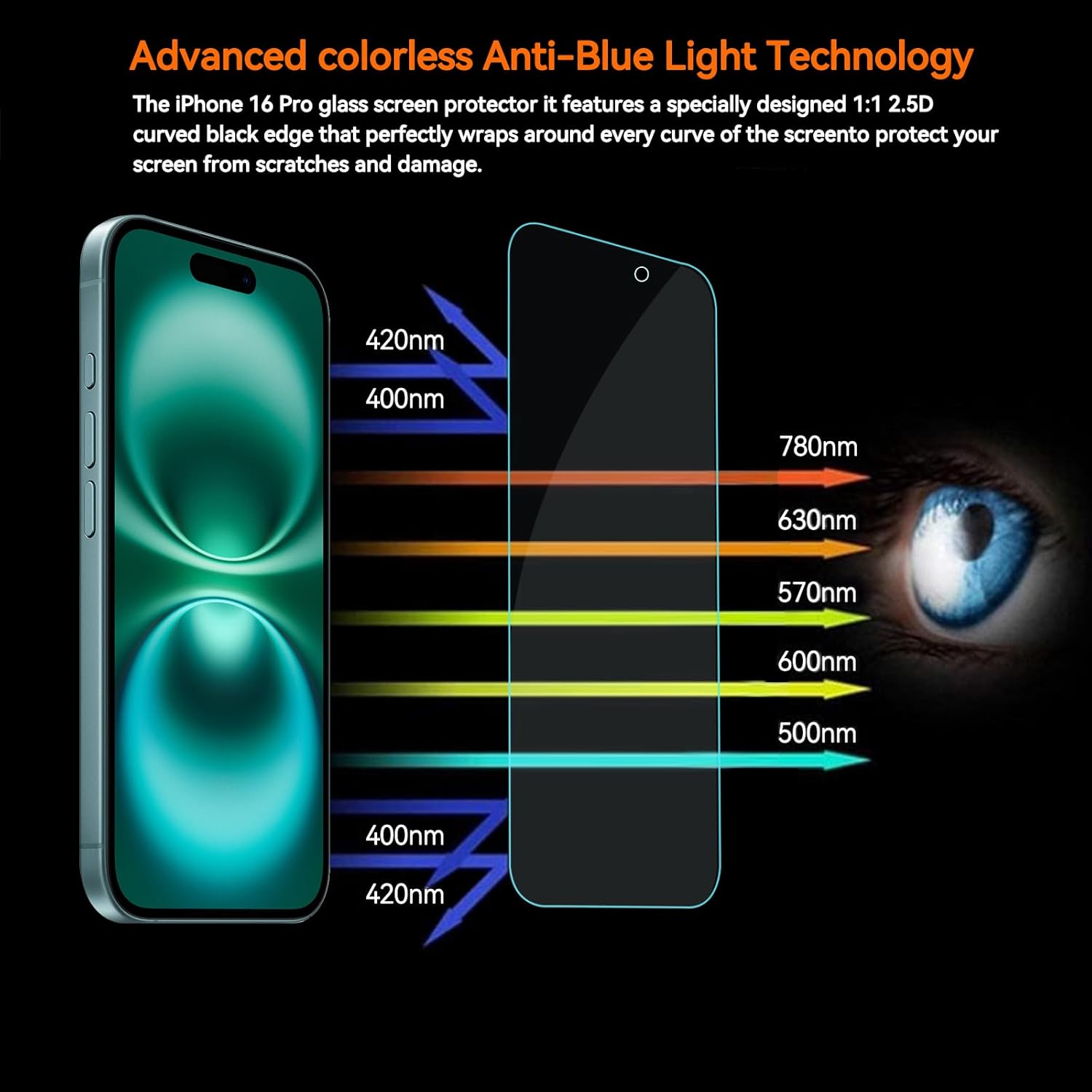- 【Anti-Blue Light Screen for iPhone 16,iPhone15 】Our tempered glass for iPhone 16can block harmful blue light from digital screens to protect your eyes