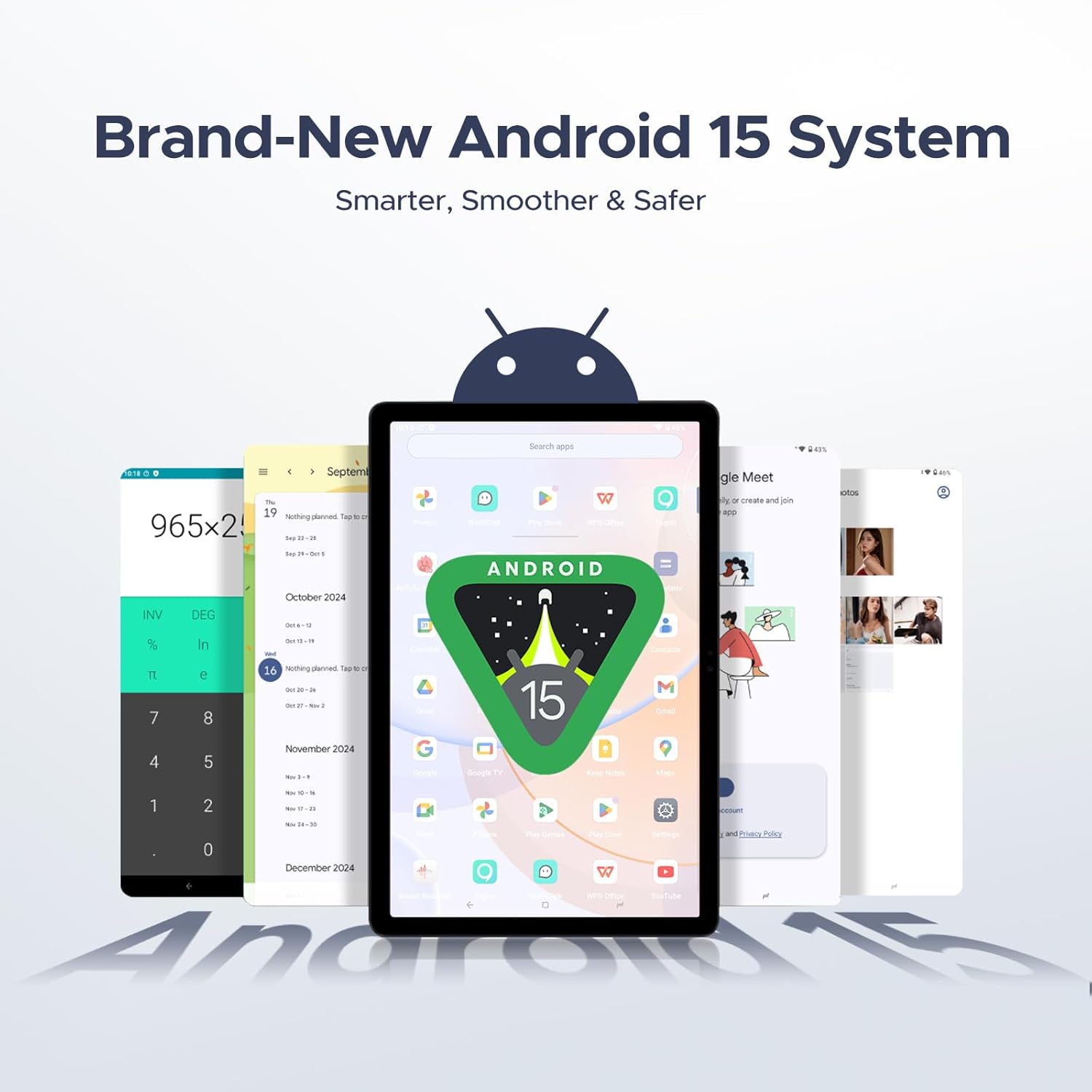 - ππ§ππ«π¨π’π ππ ππππ₯ππ: DOOGEE U10 Android 15 tablet runs the latest Android 15 OS, delivering enhanced privacy protection, smarter performance optimization, and more intuitive multitasking for a smoother and more secure tablet experience. Powered by a 2.0GHz quad-core processor, this android tablet provides smooth performance for web browsing, video playback, and light gaming while maintaining high energy efficiency for extended battery life.