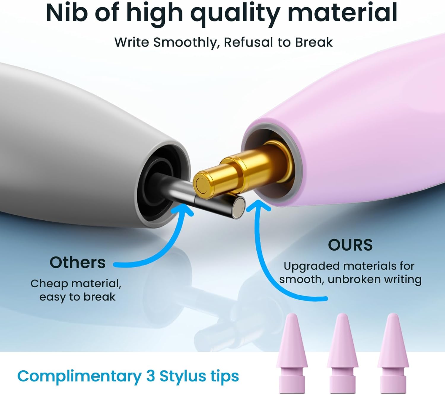 - 💡【Multiple Replaceable Long-lasting Nibs】The nibs of our iPad pens are extremely long-lasting and will last a long time without wear and tear. And we also come with 3replaceable pen tips. And it's very easy to replace the nib. This pencil looks great and has a stylish design. Our iPad Pencil features cutting-edge ergonomics that provide a comfortable grip and fit seamlessly into your hand. Its balanced weight and intuitive design ensure fatigue-free use.