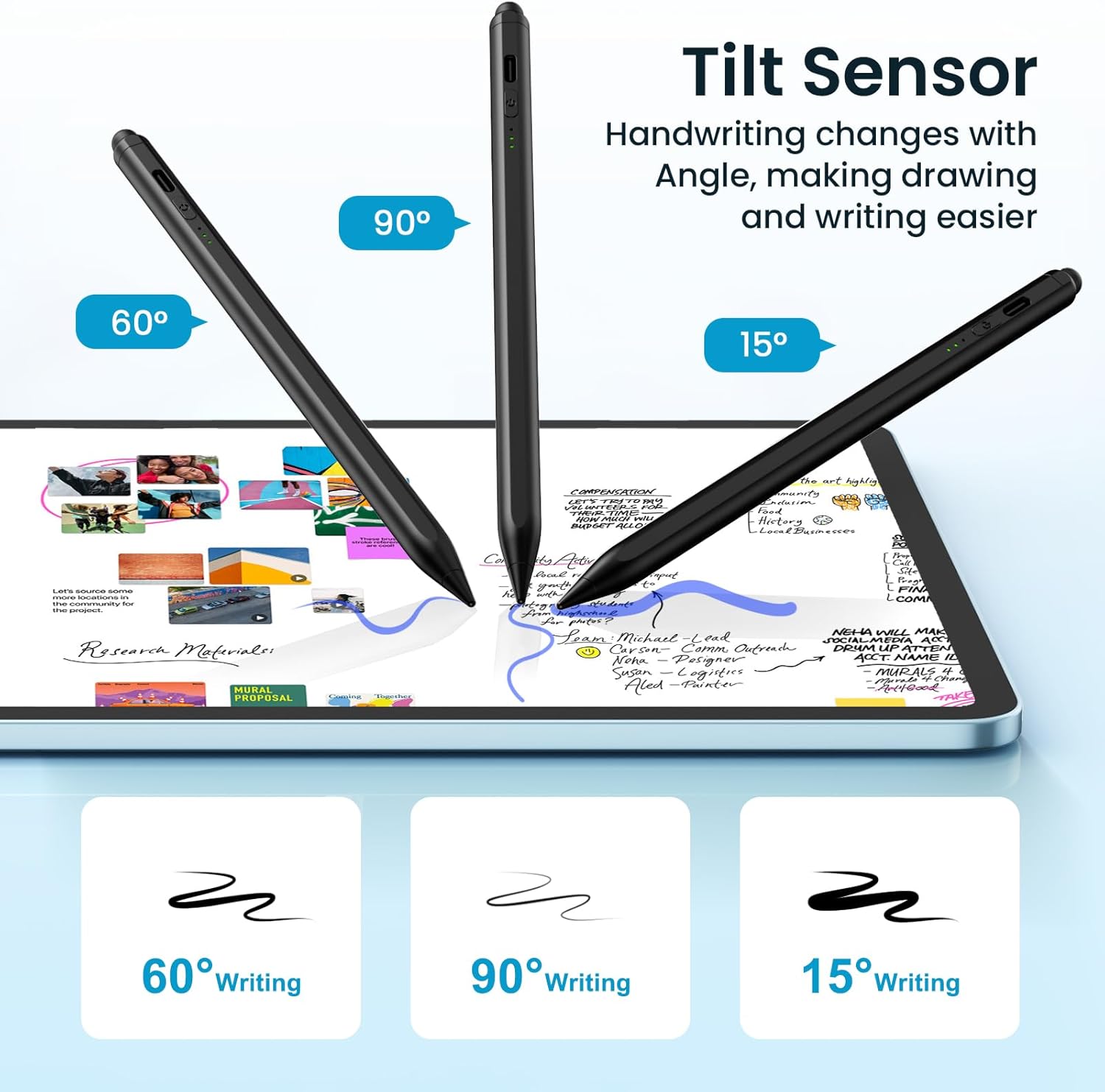 Stylus Pen for iPad(2025-2018),13 mins Fast Charge Pencil with Tilt Sensitivity and Palm Rejection for iPad A16/10/9/8/7/6,Air 13"/11"/M3/M2/5/4/3,Pro 11"/13"/12.9"/M4/M2/M1,Mini 7/6/5,Black