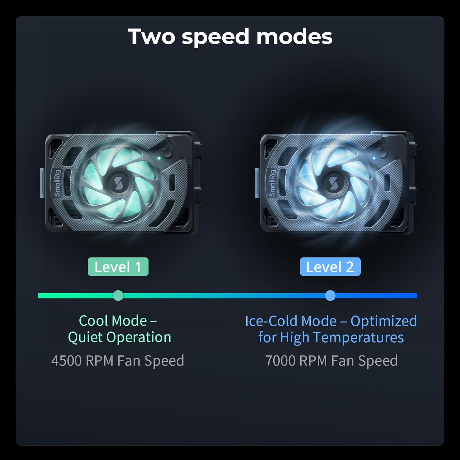- Dual-Speed Flexibility: Featuring high-speed and low-speed modes, this cooling fan adapts to various shooting environments and needs, ensuring optimal temperature control for long time recording sessions.